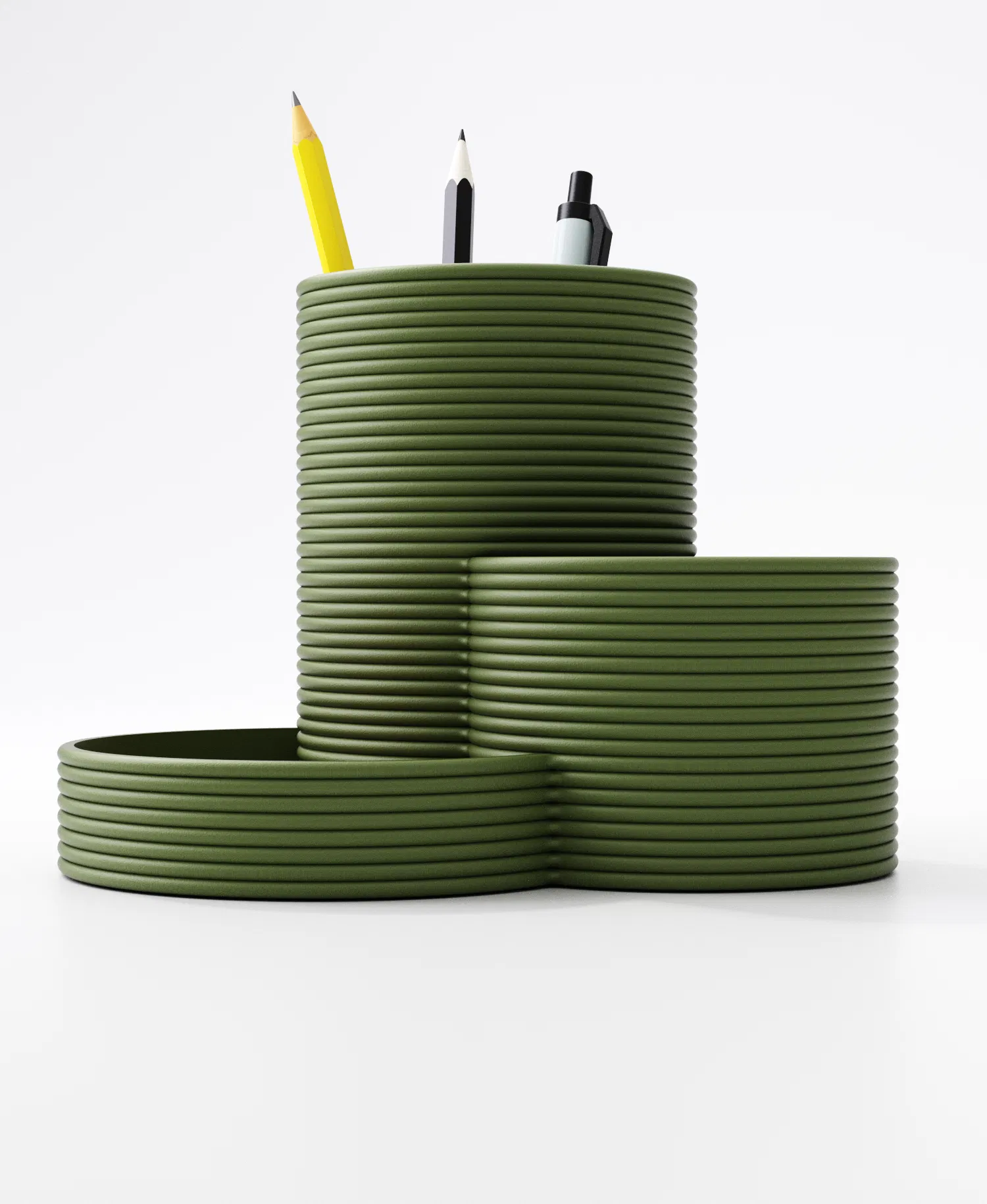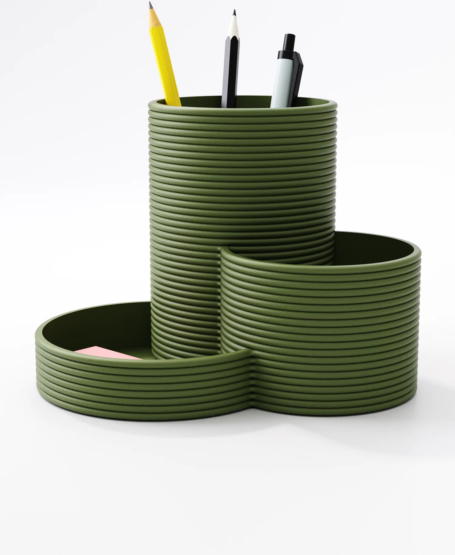 Khay đựng đồ dùng văn phòng phẩm để bàn được thiết kế chia làm ba ngăn giúp bạn sắp xếp không gian làm việc gọn gàng và ngăn nắp hơn. Mẫu này in dễ dàng không cần support.