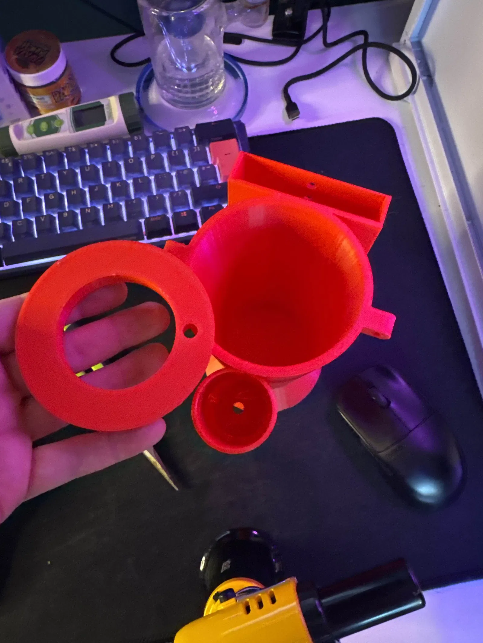 Ở phiên bản V2, mình đã lược bỏ phần giữ sạc dự phòng và bơm, làm cho nó gọn nhẹ hơn để in nhanh hơn.