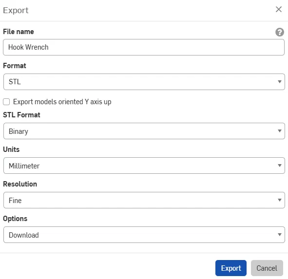 Đây là mẫu cờ lê móc (hook wrench) có thể tùy chỉnh hoàn toàn, tương tự như chuẩn DIN 1810 Form A. Dạng Form B có chốt móc nên không có trong bản thiết kế này, nhưng Form A thì cực kỳ lý tưởng cho in 3D. Lần này, vì độ phức tạp của linh kiện, mình đã sử dụng Onshape thay vì OpenSCAD như các bộ khuôn router trước đây. Vì vậy, mình cung cấp cho các bạn một đường dẫn (file văn bản) kèm theo một số kích thước thông dụng dưới dạng file STL để tải về dùng ngay. Bạn có thể tùy chỉnh và xuất bất kỳ kích thước nào mình cần mà không cần tài khoản Onshape, chỉ cần truy cập vào đường dẫn. Hãy thay đổi cấu hình ở góc trên bên trái và xem hình ảnh mình đính kèm để biết cách cài đặt xuất file chính xác. Hiện tại đã có 20 kích thước khác nhau cho bạn lựa chọn. Mình đã thiết kế vượt xa nhu cầu sử dụng thông thường cho một chiếc cờ lê in 3D chịu lực cao 😄. Nếu ai cần 6 kích thước lớn nhất lên đến đường kính 500mm, cứ cho mình biết, mình sẽ bổ sung ngay. Ngoài kích thước, bạn còn có thể chọn thêm lỗ treo và in chìm tên kích thước lên dụng cụ. Hãy cho mình biết nếu bạn cần hỗ trợ thêm gì và chúc các bạn in ấn vui vẻ! 🖖 ### Hướng dẫn in Mẫu của mình là size ø58-62. In bằng nhựa PETG, 5 perimeters, độ dày lớp 0,2mm, độ dày đáy và mặt trên 1,2mm, infill kiểu gyroid 50%. Mình đã dùng mẫu này để chỉnh tải lò xo cho đai ốc của một chiếc xe đạp điện và nó hoạt động rất tốt. 🖖 Kinh nghiệm rút ra là: không gian trên xe chỉ đủ để vặn siết lò xo, không đủ chỗ để xoay ngược dụng cụ. Chắc dự án tới mình sẽ thiết kế thêm loại cờ lê bán nguyệt "ER spanner wrench". Vì có quá nhiều biến số về kích thước và vật liệu, mình chưa thể mô phỏng chính xác lực siết tối đa. Nhưng mình tin là - giống như trường hợp của mình - có rất nhiều tình huống mà việc tự in được dụng cụ trong một giờ vẫn tốt hơn là không có gì để dùng.