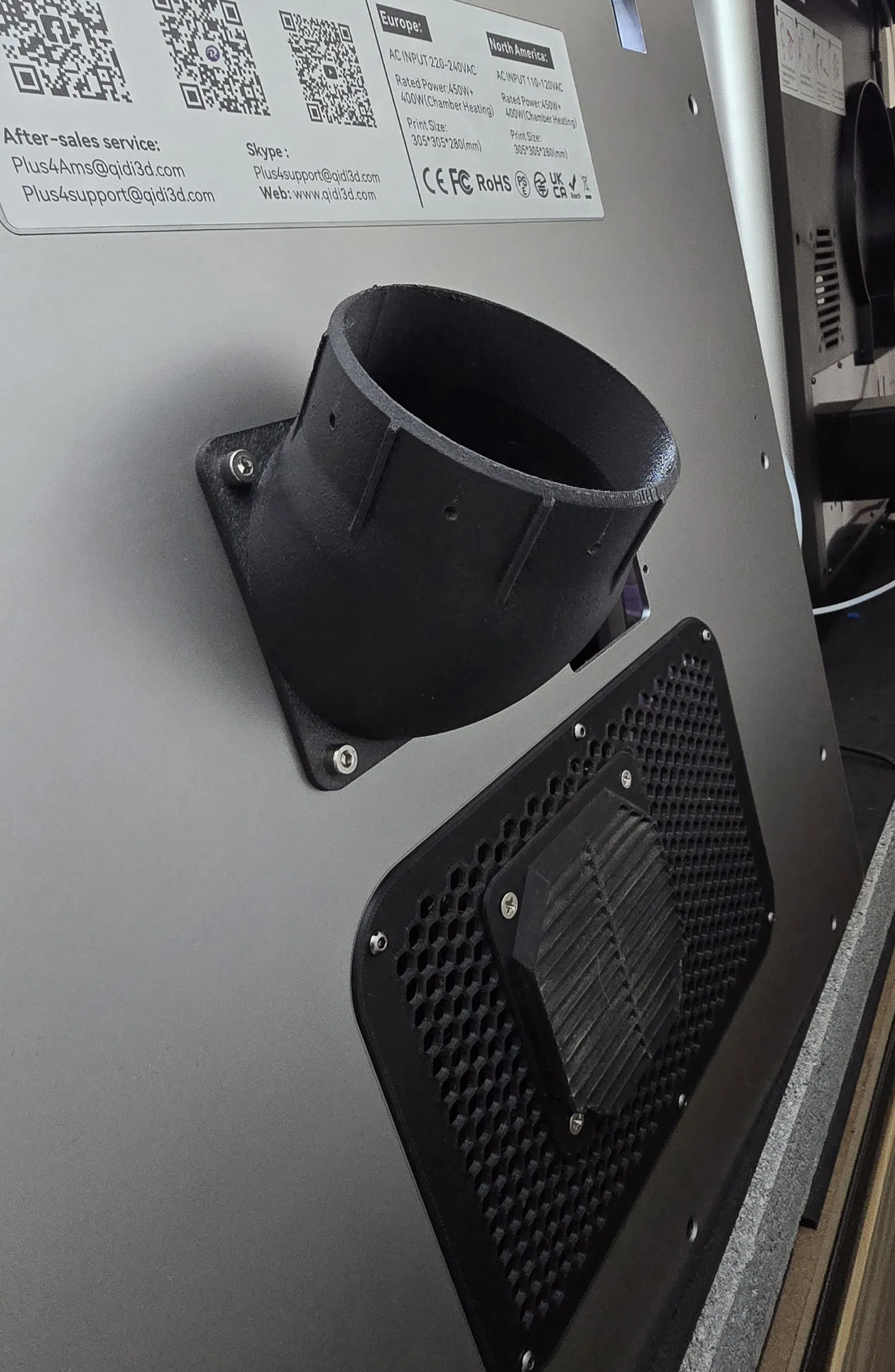 Các mô hình này được thiết kế để cải tiến hoàn toàn hệ thống ống xả mặc định của Qidi Plus 4, vốn có nhiều điểm hạn chế, tiêu biểu là nó gần như không hoạt động hiệu quả. Bộ sưu tập này bao gồm các linh kiện hỗ trợ khoan lỗ gắn ống xả, thay thế khung lọc khí kém chất lượng, ngăn khí nóng xâm nhập vào buồng chứa bo mạch điện tử, cung cấp cơ chế gắn kết chắc chắn cho ống dẫn, và các chi tiết giúp định hướng luồng khí ra ngoài cùng đầu nối cho ống mềm kích thước 3" hoặc 4".