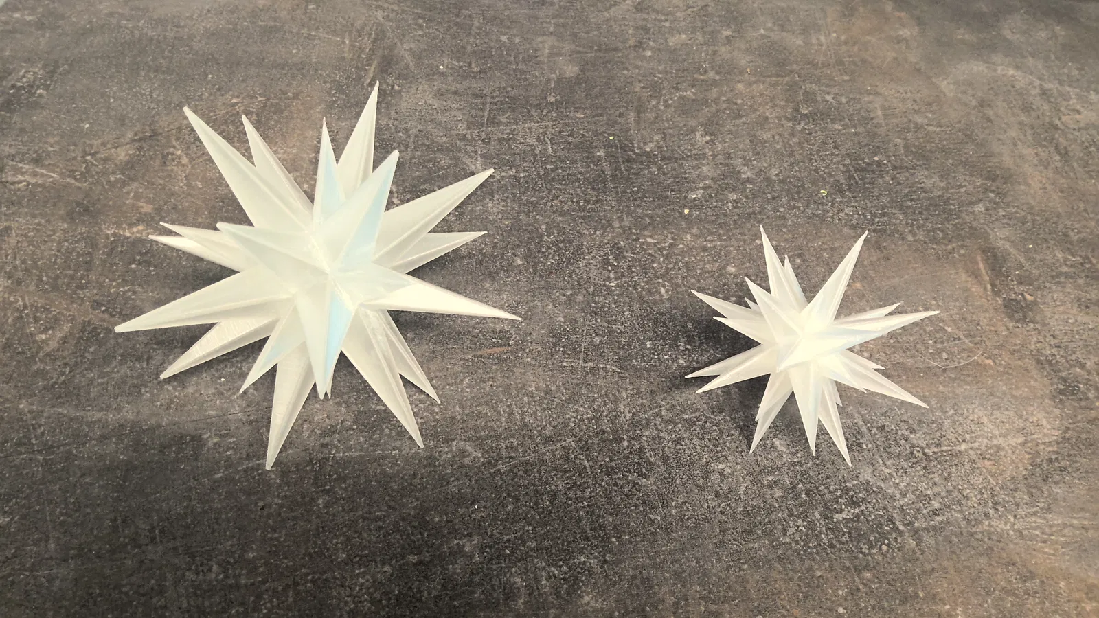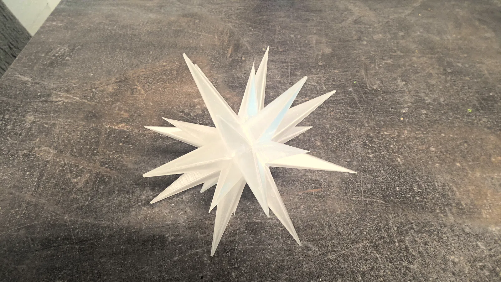 Mô hình ngôi sao Hernhuter Stern với 4 kích thước tùy chọn. Thiết kế tối ưu cho in 3D với nhựa PETG trong suốt để tạo hiệu ứng ánh sáng tuyệt đẹp cho mùa Giáng sinh. Sản phẩm không cần hỗ trợ khi in.