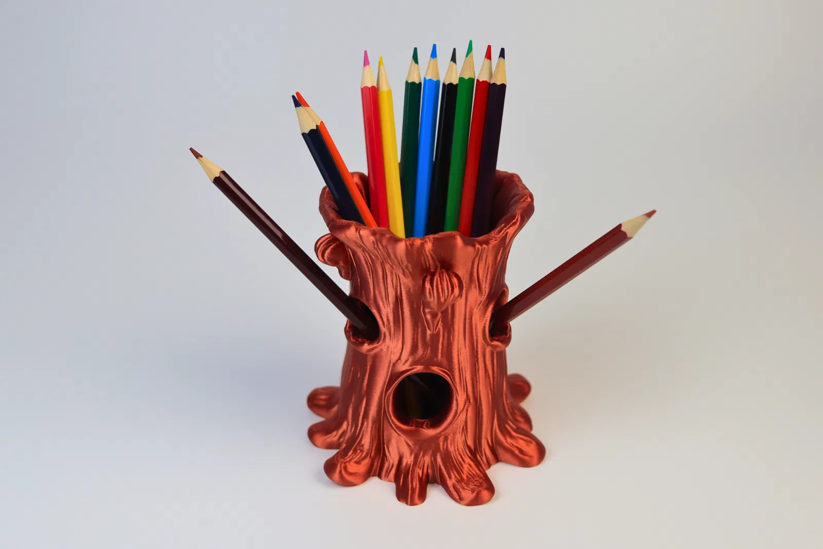 Mang hơi thở của rừng cây phép thuật vào góc học tập của bé với ống cắm bút WhimsyWood. Sản phẩm có thiết kế độc đáo, không cần support khi in, giúp bé sắp xếp bút màu và dụng cụ vẽ một cách gọn gàng và đầy cảm hứng.