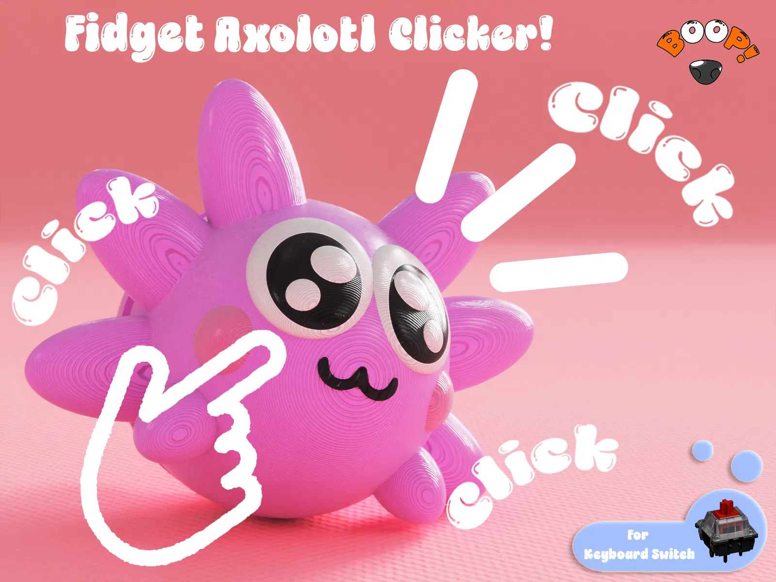 > Nhận Giấy phép Thương mại + các mẫu ĐỘC QUYỀN trên Patreon tại: https://www.patreon.com/c/boopboop3d/membership --- > Chú Axolotl Clicker phong cách kawaii này có sẵn tệp 3MF đa màu sắc, hỗ trợ Print-in-Place (in nguyên khối) ✨ ------ > LƯU Ý: ❗ Tất cả thiết kế của Boop-Boop! đều được bảo hộ bởi Luật Bản quyền. Việc bạn mua hàng chỉ cho phép bạn tải xuống và in mẫu để sử dụng cá nhân. Bạn KHÔNG được phép bán lại hoặc phân phối lại các tệp kỹ thuật số này dưới bất kỳ hình thức nào, bao gồm cả các phiên bản đã chỉnh sửa hoặc "remix". Bạn không được phép bán các mô hình đã in nếu chưa có sự cho phép. Để có quyền thương mại hợp lệ khi bán các mô hình đã in (bao gồm cả các mẫu miễn phí), bạn cần tham gia cấp độ "Boopers!" của mình trên Patreon ------- Sử dụng Switch bàn phím cơ loại MX: https://a.co/d/bYQGFv5 > Đừng ngần ngại chia sẻ thành phẩm của bạn dưới phần bình luận nhé!