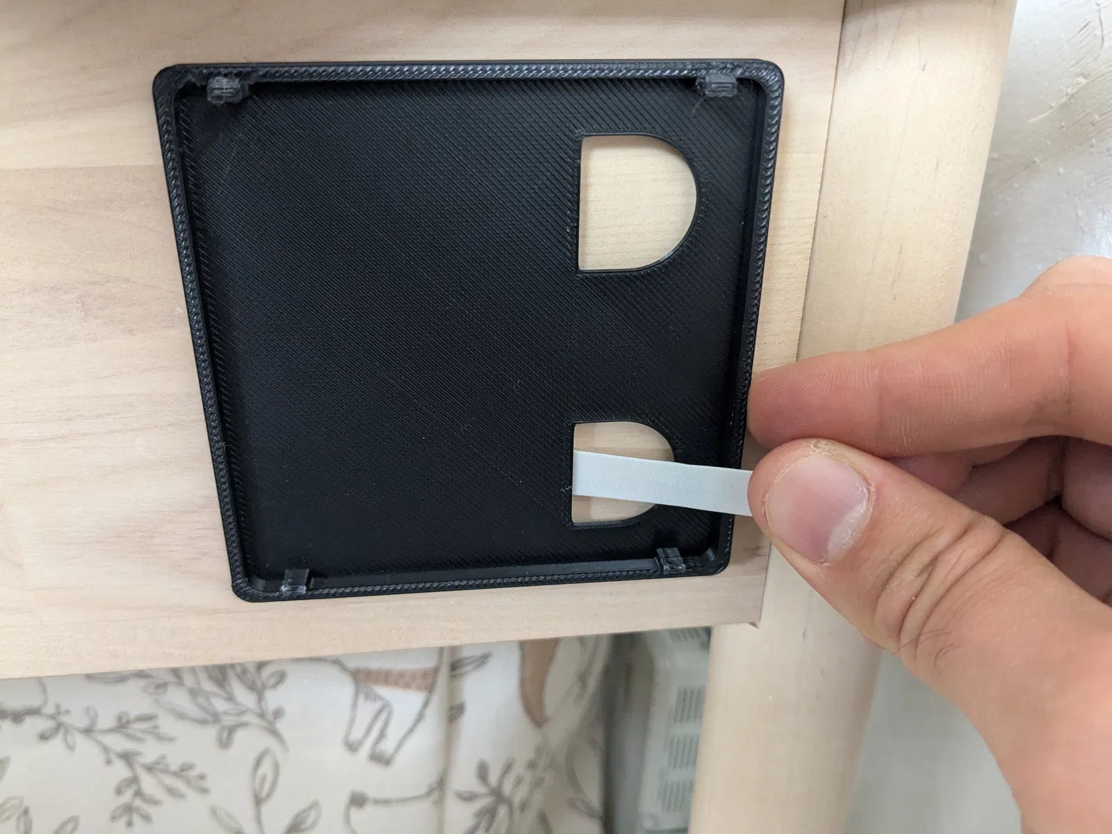 - Tinh chỉnh: Do thiết kế có các lỗ khoét, hãy kiểm tra kỹ kích thước miếng Command strip bạn đang có để đảm bảo vừa vặn với lỗ khoét trên khung.