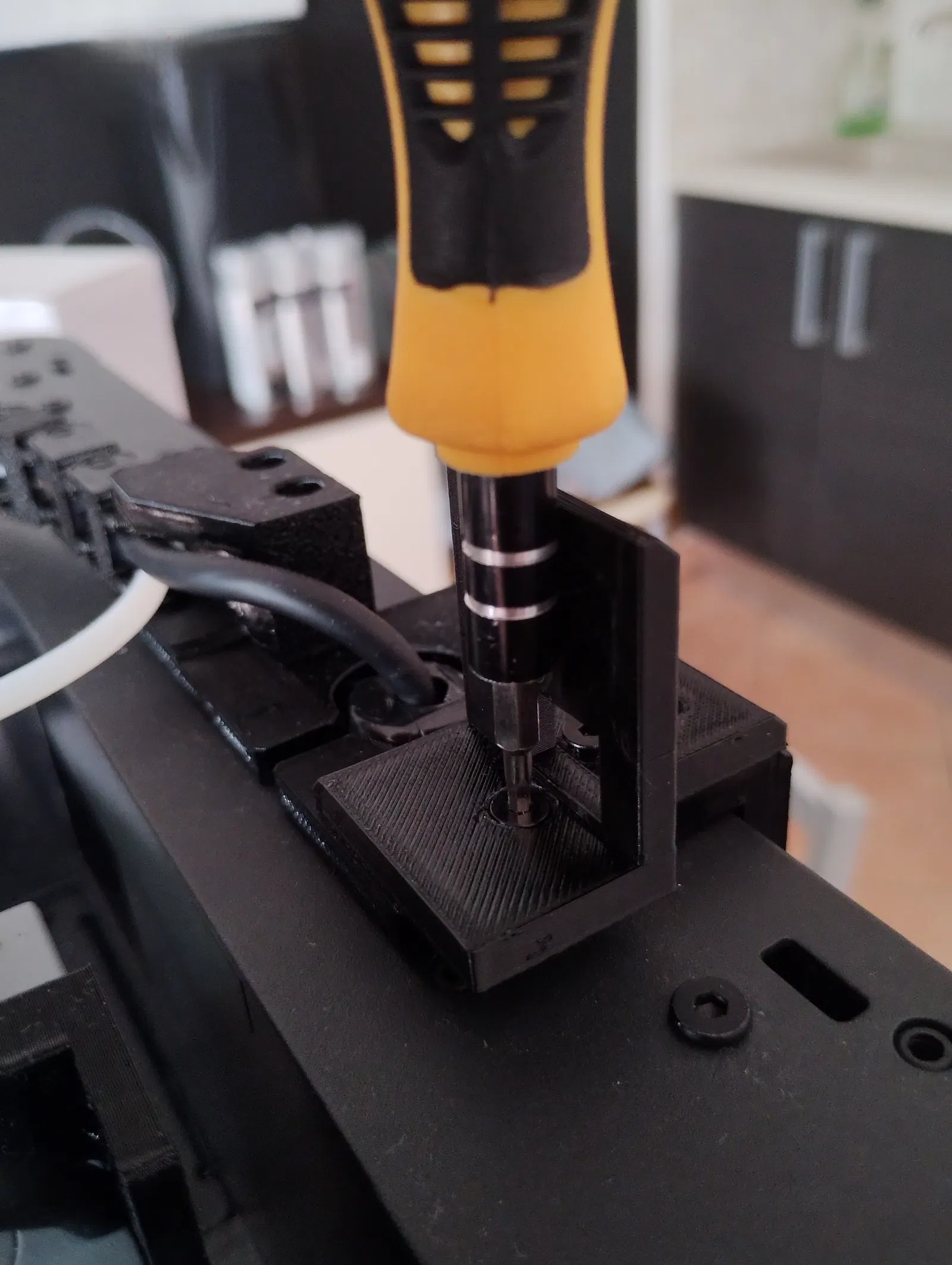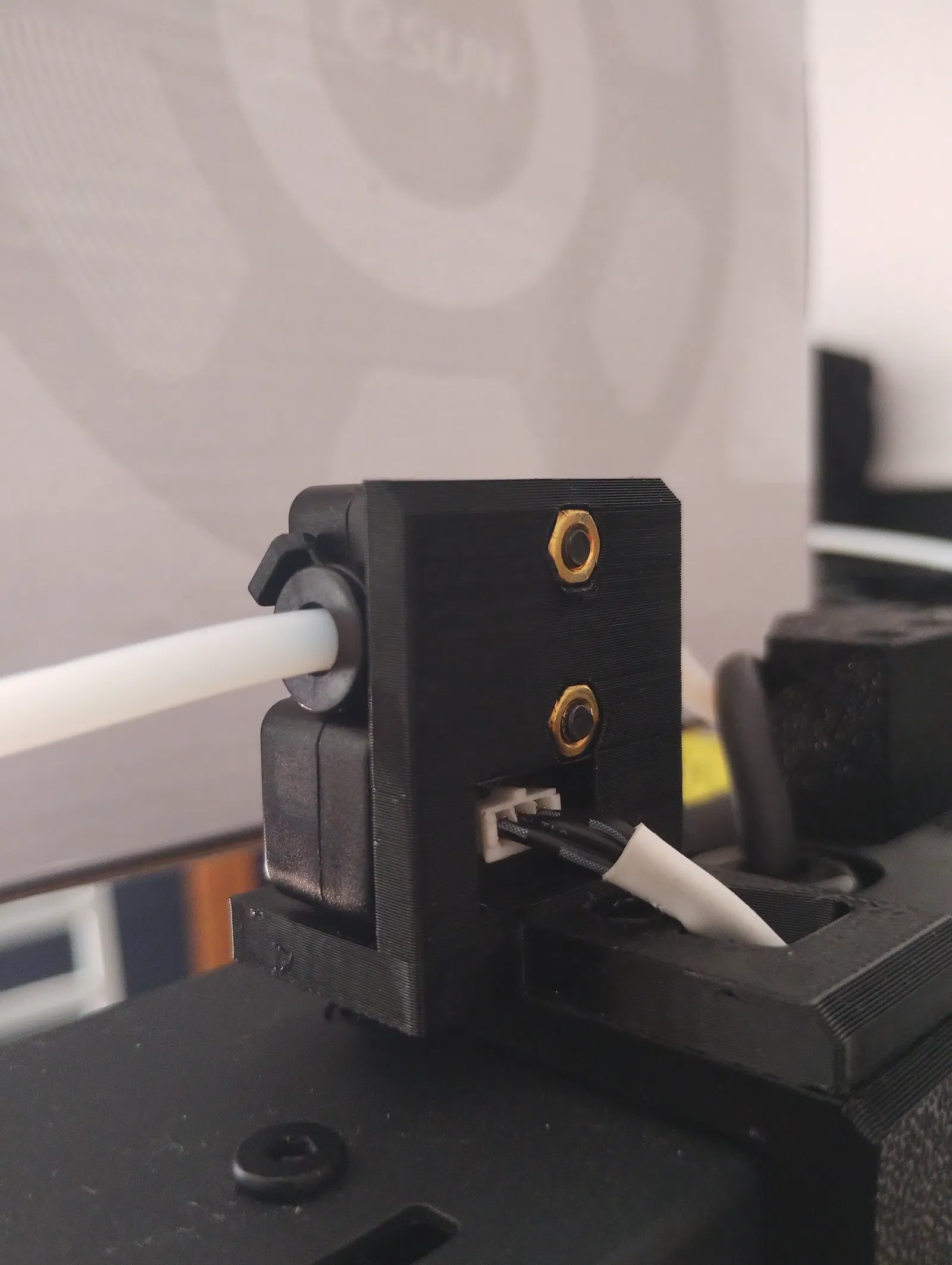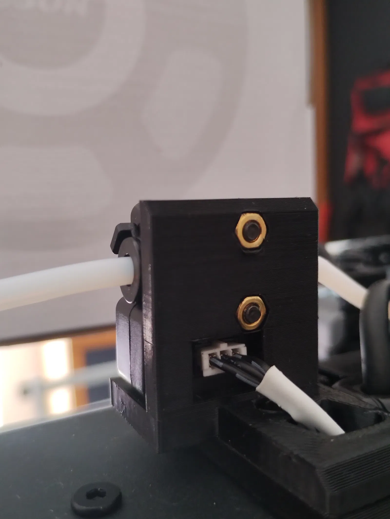 Sau khi in bộ xích của XTRUD3D cho máy Flashforge Adventurer 5M, mình nhận ra cảm biến sợi nhựa (filament sensor) không thể hoạt động đúng cách được. Vì vậy, mình đã thiết kế thêm bộ giá đỡ này cho cảm biến.