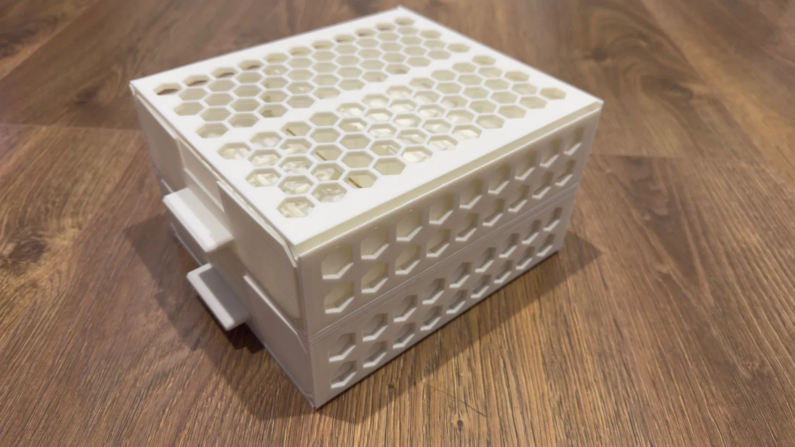 Mẫu thiết kế ban đầu vốn đã rất tuyệt, nhưng mình muốn cải tiến hệ thống ngăn kéo hơn nữa. Mình đã thiết kế lại các ngăn kéo để phần tay cầm có thể in rời, đồng thời bổ sung thêm hệ thống khớp nối tùy chỉnh giúp việc lắp ráp dễ dàng hơn (khuyên dùng thêm keo dán để chắc chắn hơn). Ngoài ra, mình đã giảm độ dày các khớp nối đi 1mm để đảm bảo khớp vừa khít hơn với các thanh nối.
