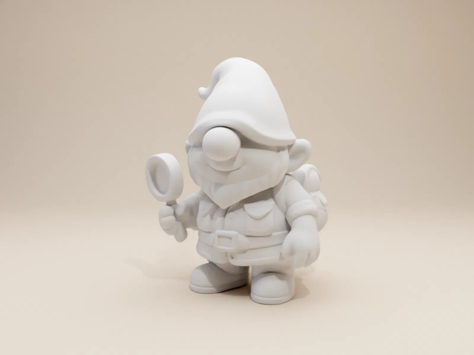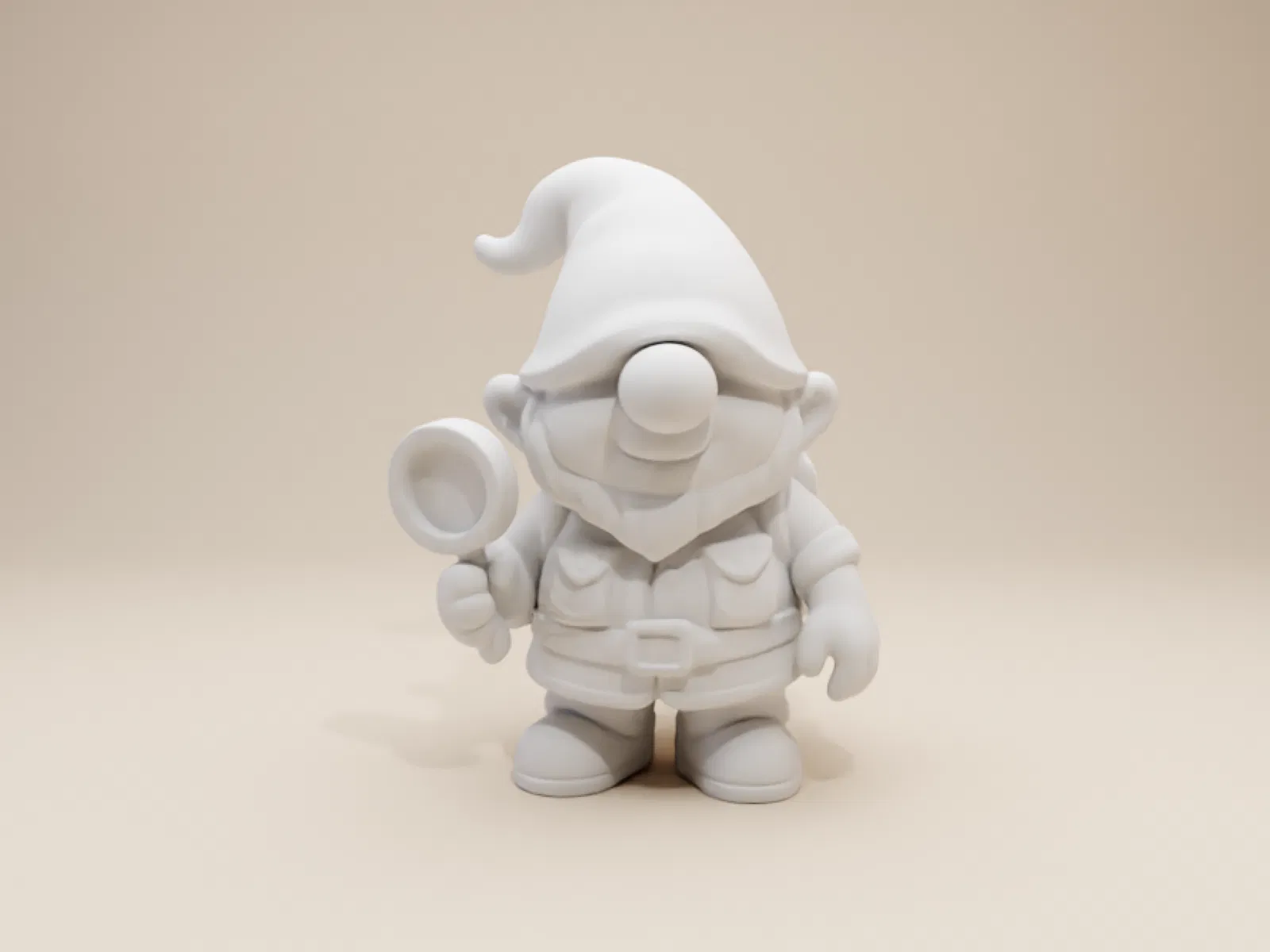 Chú chú lùn giữ vườn (gnome) nam trẻ tuổi đầy tò mò này đã sẵn sàng cho chuyến phiêu lưu! Được thiết kế theo phong cách thủ công, đầy nét tinh nghịch, mô hình in 3D này có chiếc mũ chóp cao uốn cong nhẹ nhàng ở phần đỉnh, che khuất cả đôi mắt. Chỉ có cái mũi tròn trịa là lộ ra dưới vành mũ.