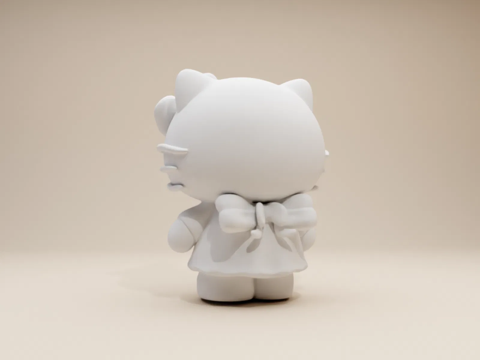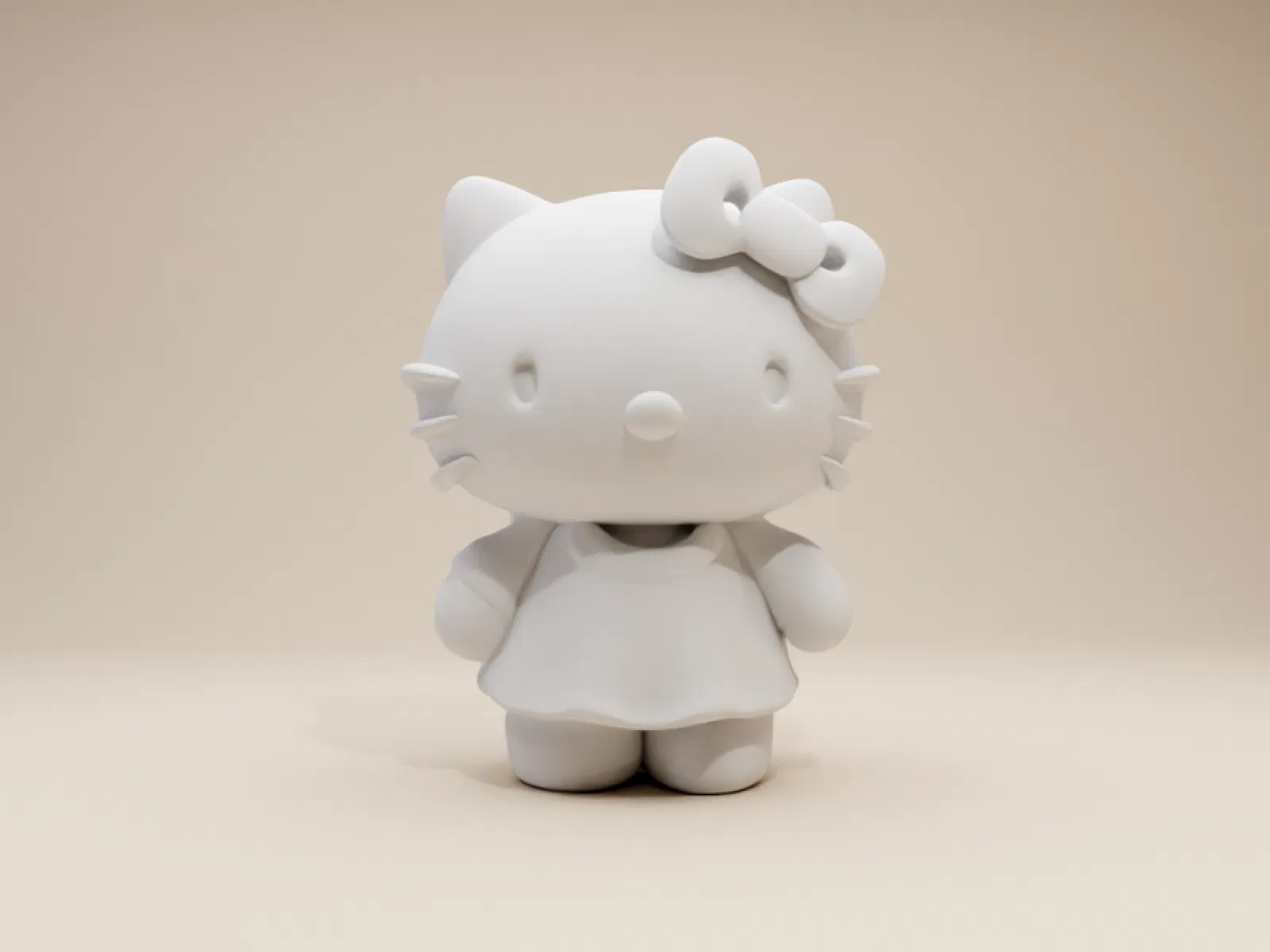 Một mẫu tượng Hello Kitty siêu cưng và duyên dáng, được thiết kế theo phong cách thủ công đầy mơ mộng. Cô nàng sở hữu thân hình tròn trịa, tối giản, với đôi tay và bàn chân mũm mĩm. Điểm đặc biệt là khuôn mặt không có mắt hay miệng rõ ràng — thay vào đó là chiếc mũ chóp cao uốn cong nhẹ nhàng che khuất đôi mắt, chỉ để lộ ra chiếc mũi tròn đặc trưng.