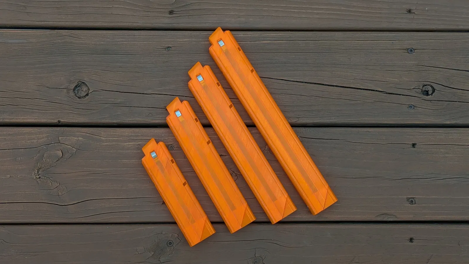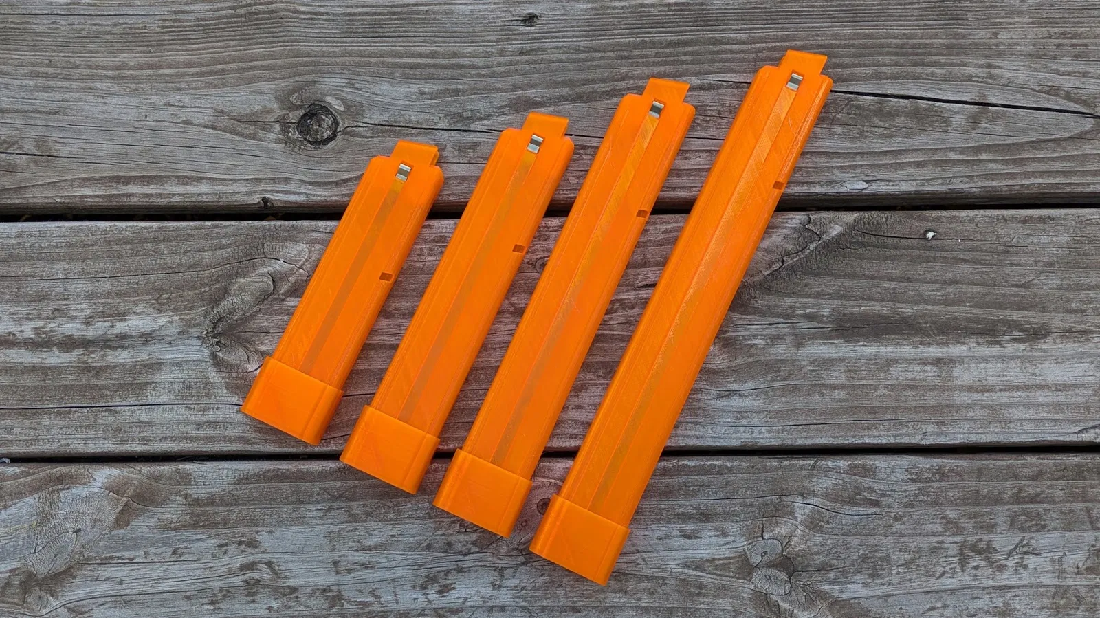 Đây là Mockingbird Mag, dòng băng đạn slim angled talon in 3D dung lượng cao, hỗ trợ nhiều loại blaster với đa dạng tùy chọn khớp gài. Thiết kế sử dụng cấu trúc Compound Mag (của RedCowl) nhưng được gộp thành một khối duy nhất và in nghiêng 45 độ, tương tự như (của donutcat) và của mình. Việc in nghiêng mang lại nhiều lợi ích: bạn có thể in băng đạn dài hơn tận dụng tối đa bàn in, đường layer không gây cản trở khi đạn nạp vào hoặc khi rơi tự do, đồng thời tổng thể băng đạn cũng bền bỉ hơn.