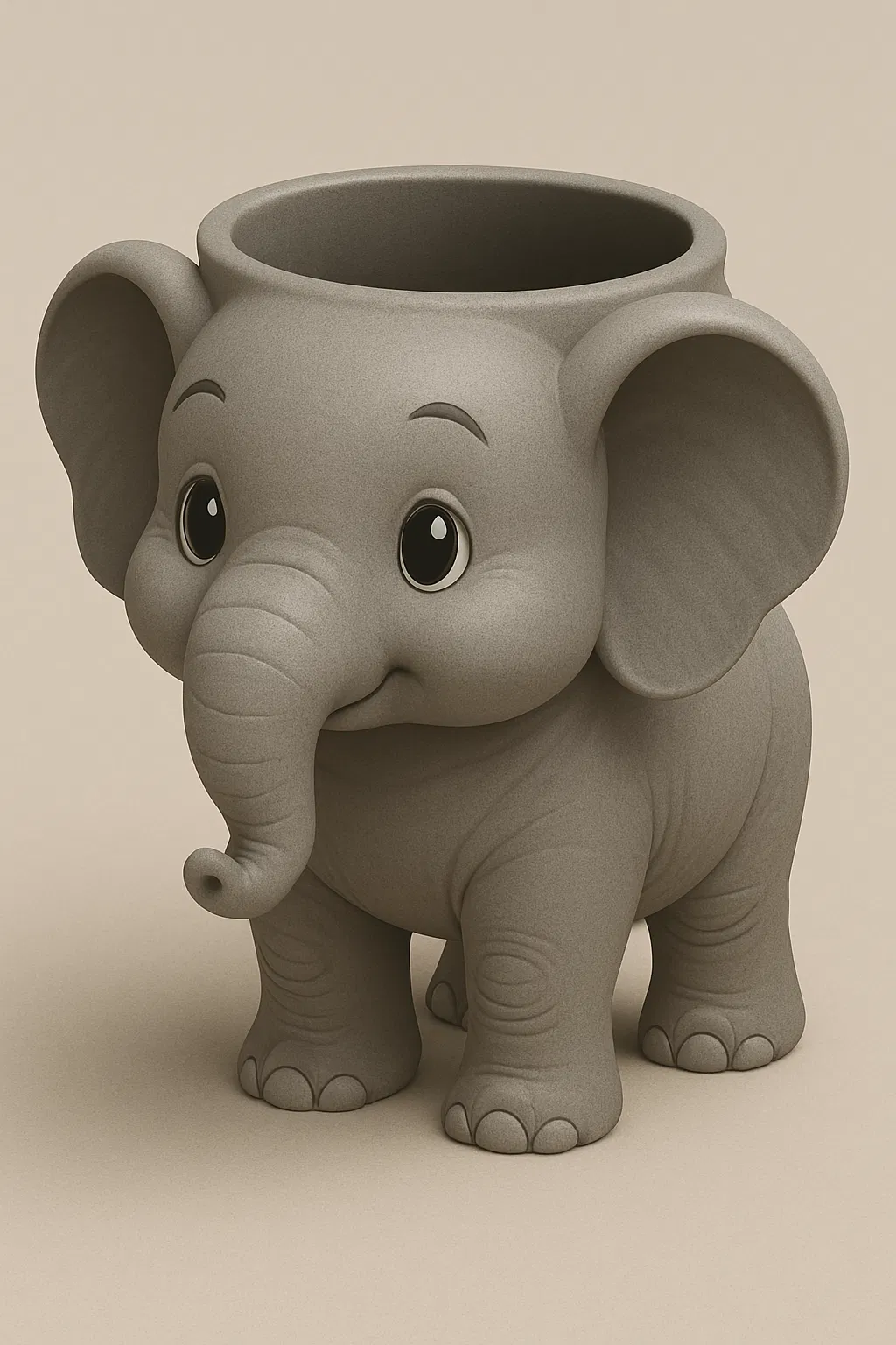 Chiếc chậu cây hình chú voi Eli đáng yêu, thiết kế tỉ mỉ để trồng sen đá hoặc trang trí bàn làm việc. Biểu tượng của sự may mắn, bình an và niềm vui, là món quà tuyệt vời dành tặng người thân và không gian sống của bạn.