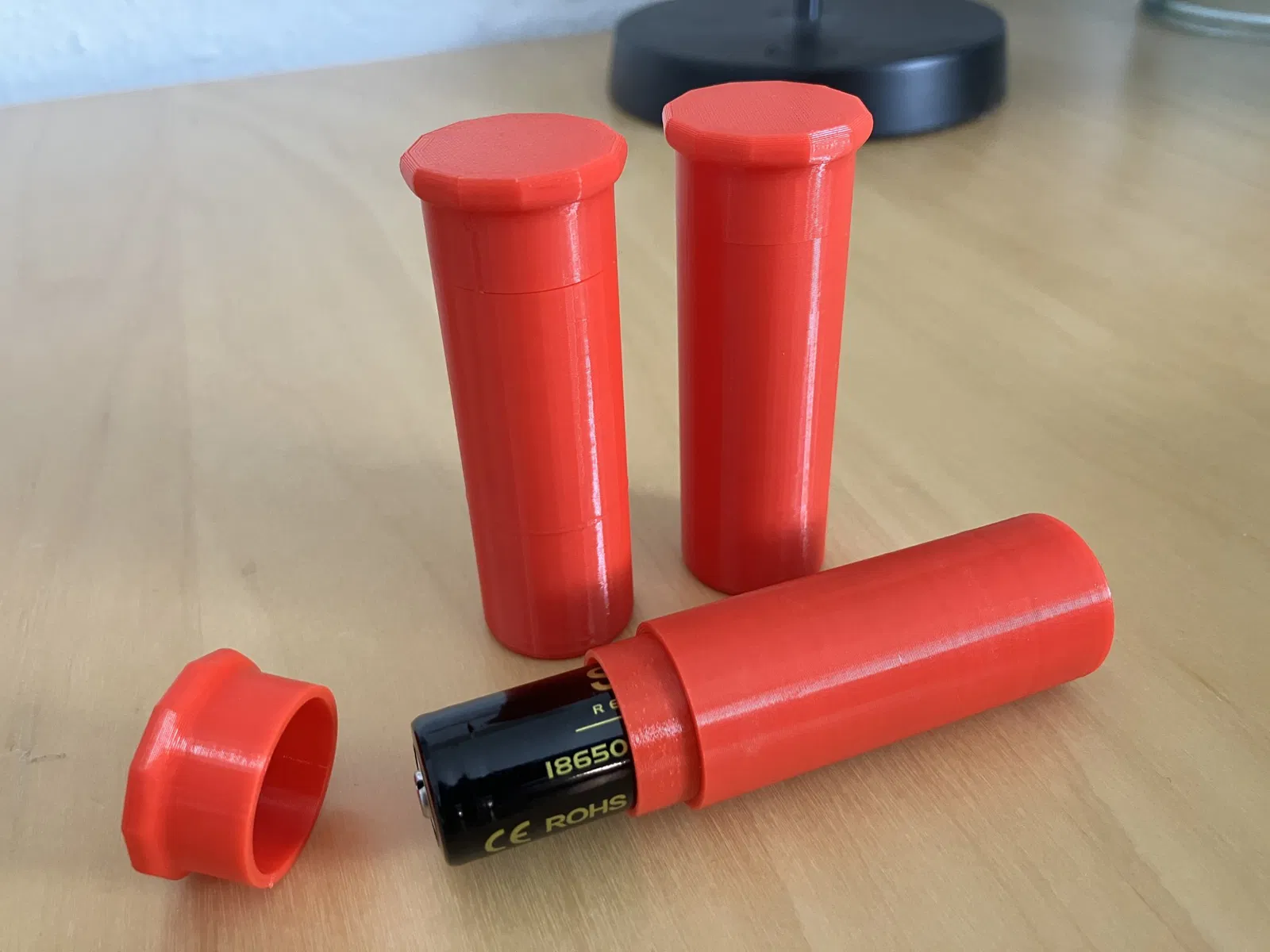 Nó được thiết kế cho pin 18650 đơn với chân “+” hoặc không có. Nắp có các cạnh để ngăn việc lăn và một tay quay để mở dễ dàng.