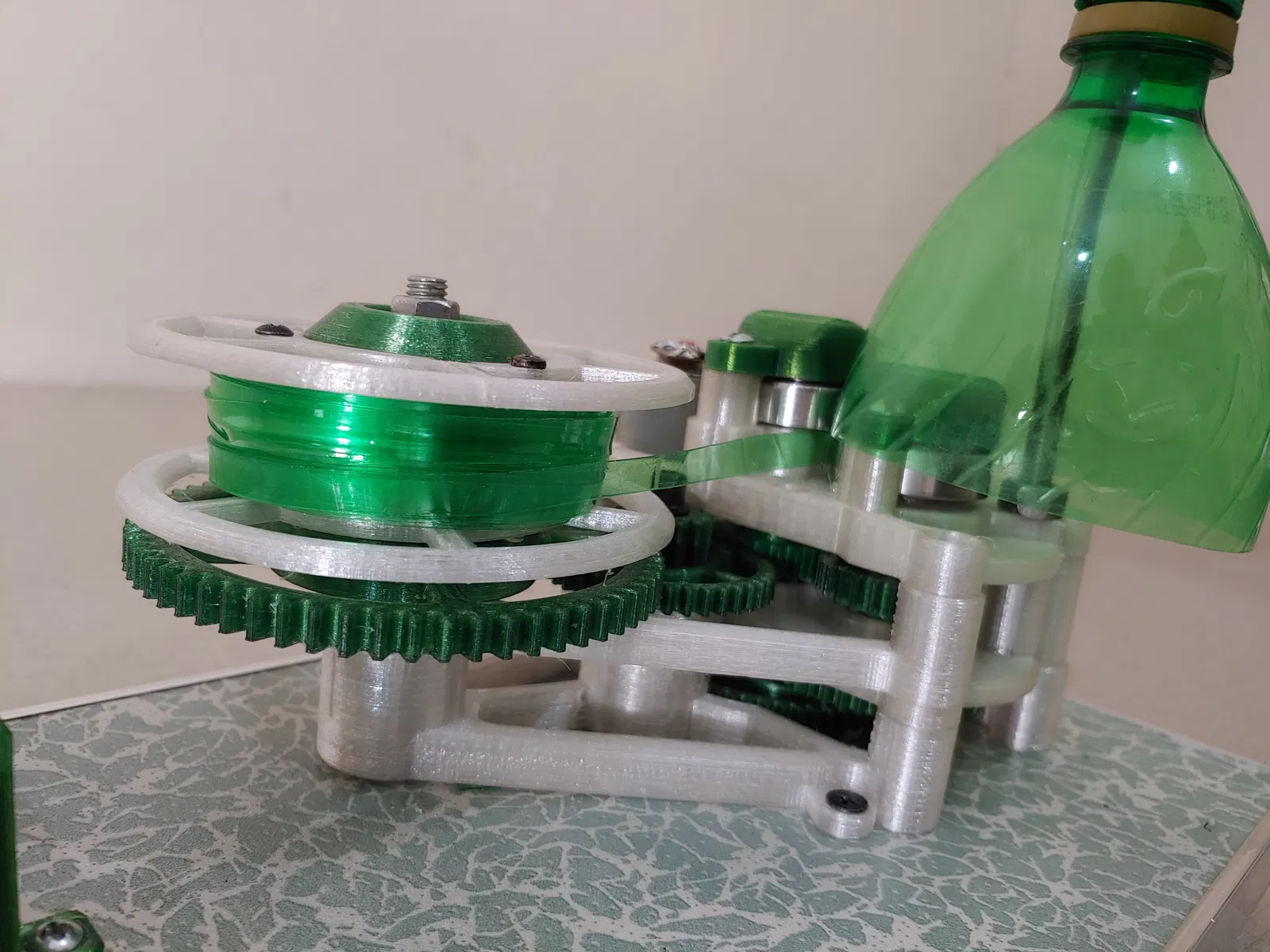 Đây là phiên bản nâng cấp của thiết bị cắt dải nhựa PET, một công cụ vô cùng hữu ích dành cho những ai đam mê in 3D và muốn tự chủ nguồn nguyên liệu. Thay vì phải tốn tiền mua filament mới liên tục, bạn hoàn toàn có thể tận dụng những vỏ chai nhựa PET bỏ đi trong nhà để biến chúng thành những dải nhựa đều đặn, phục vụ cho quá trình in ấn hoặc làm các sản phẩm thủ công khác. Thiết bị này hoạt động dựa trên cơ chế kết hợp giữa các bánh răng 3D in ra và một động cơ điện, giúp việc cắt vỏ chai trở nên nhẹ nhàng, chính xác và chuyên nghiệp hơn bao giờ hết.