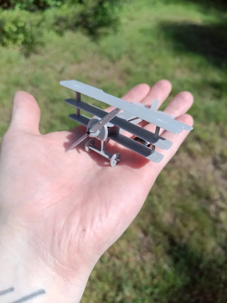 Sải cánh trên cùng rộng 110mm (hơn 4 inch một chút). Bạn chỉ cần tách các chi tiết ra, làm sạch bề mặt, dùng một chút keo dán sắt, một đoạn dây thun trang sức 0.5mm và một ít dầu bôi trơn là “Nam tước đỏ” này đã sẵn sàng cất cánh! Hãy cẩn thận khi tách mô hình khỏi bàn in để giữ nguyên các chi tiết nhỏ và phần mỏng. Ngoài ra, cánh quạt được thiết kế hơi dài để bạn có thể cắt tỉa nhằm thay đổi đặc tính bay—tui đã đính kèm tệp riêng cho cánh quạt dự phòng nếu bạn lỡ tay cắt quá nhiều.