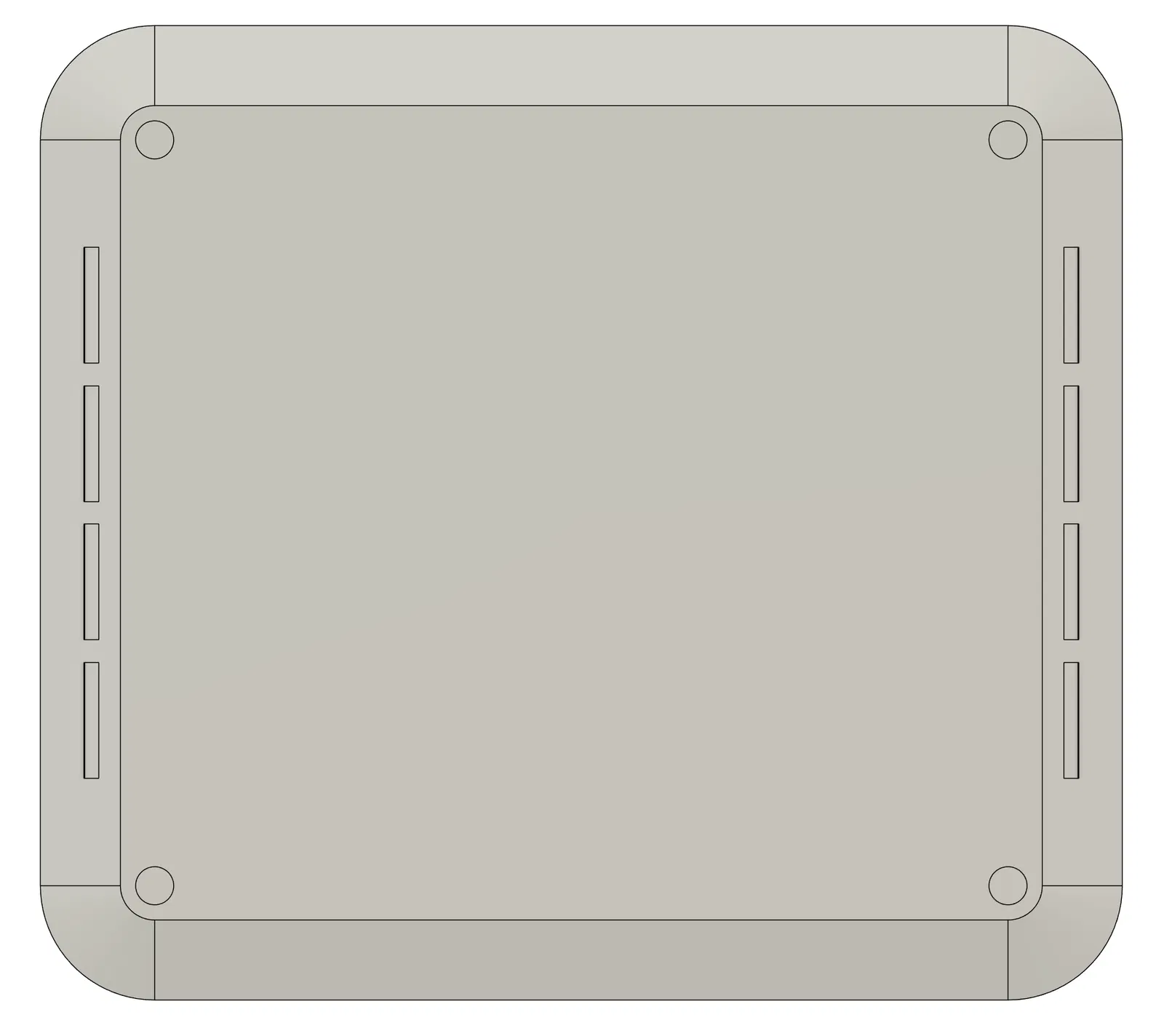 Mẫu thiết kế này được mình tự làm từ đầu để có thể tự chế giá treo rack (rack mount). Mình muốn để chừa các khoảng trống cho khe thông gió và có thể là cả khay chứa ổ cứng nữa.