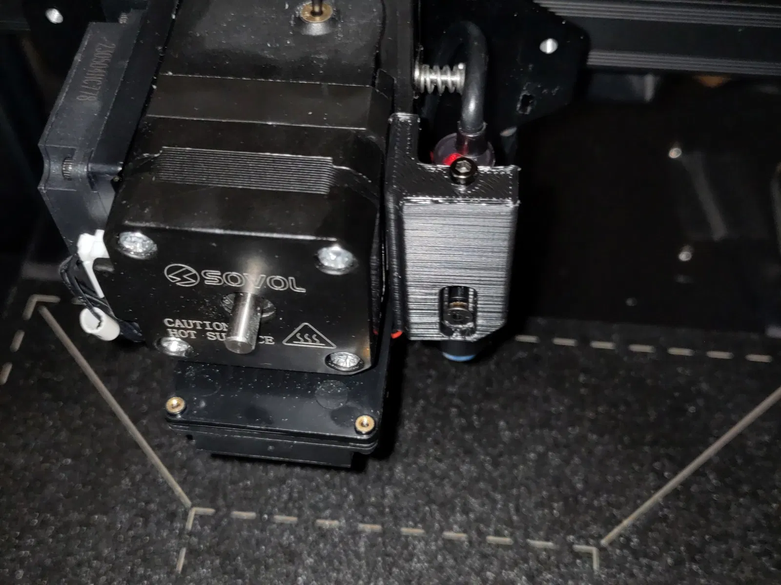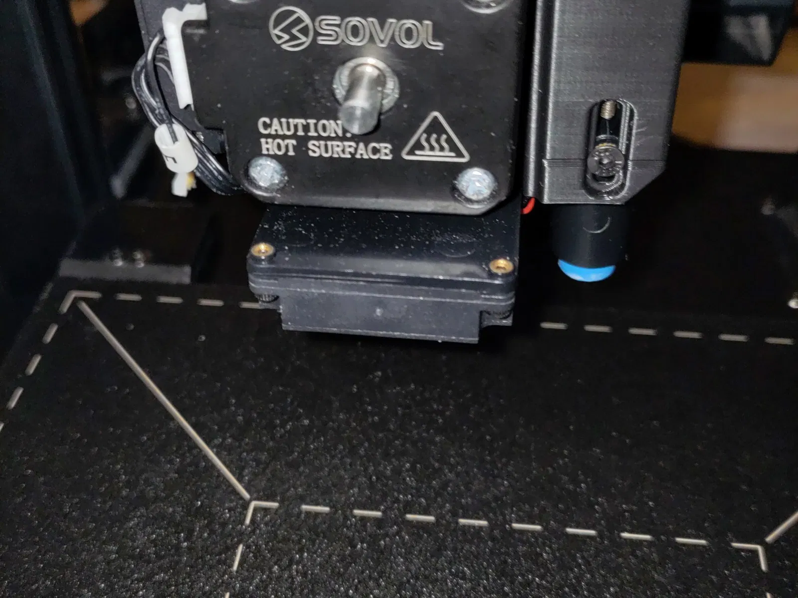 Giá đỡ đầu dò từ tính gốc cho các máy in Sovol SV07 và SV07+ không cho phép thay đổi chiều cao của đầu dò.