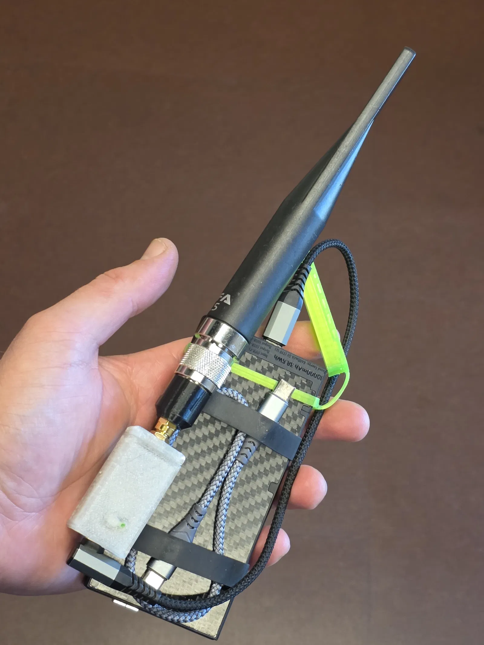 Cách lắp dễ nhất mình tìm ra là vòng dây ăng-ten xuống dưới và quanh phía cổng USB của module SX1262, đặt cổng USB-C vào lỗ trước, sau đó mới lắp ăng-ten Bluetooth (loại hình chữ nhật lớn hơn trong hai cái ăng-ten đi kèm) vào mặt sau của case.