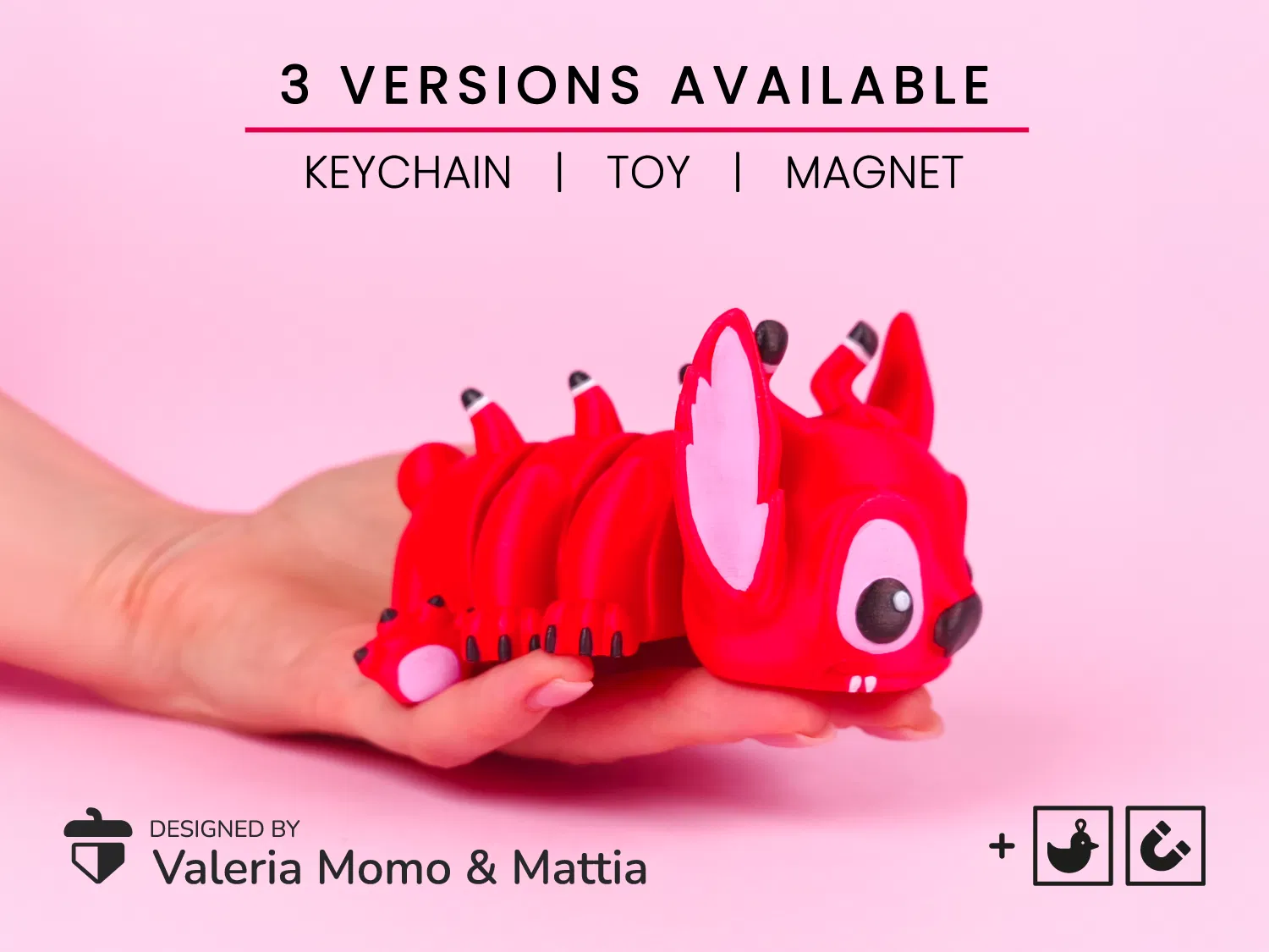 Mô hình Leroy linh hoạt siêu cưng (Phim Lilo & Stitch) | Video YouTube 🌴 Cuối cùng thì bộ ba cũng đã hoàn thiện 🌺🌴! Stitch, Angel, và giờ đây là Leroy cũng đã góp mặt, mời mọi người xem qua Bộ sưu tập Stitch & Co của tụi mình!! Tụi mình xin giới thiệu đến các bạn mô hình Leroy linh hoạt siêu đáng yêu (từ phim Lilo & Stitch) với các phiên bản làm đồ chơi, móc khóa và nam châm (D8x2mm)! Rất dễ in (print-in-place) và không cần dùng hỗ trợ (support). Bạn sẽ tìm thấy file stl và 3mf (cho máy in Bambulab, Anycubic và Creality) cho từng phiên bản. ### Mẹo tô màu nếu bạn không có AMS 🎨 Tụi mình đã thử dùng loại bút marker acrylic mua trên Aliexpress / Temu và thấy rất ưng ý. Lời khuyên duy nhất: trước khi tô lên mô hình “quan trọng”, hãy thử nghiệm trước để đảm bảo màu không bị nhòe nhé. ### Cách lắp phiên bản “Nam châm” 🧲 Đối với phiên bản Nam châm, bạn hãy sử dụng 2 viên nam châm tròn D8x2mm. 🔨 Cách lắp rất đơn giản: chỉ cần ấn nam châm vào, chúng sẽ vừa khít. Nếu muốn chắc chắn hơn, bạn có thể cho thêm một chút keo (tụi mình thì không cần dùng keo vẫn ổn). Giấy phép thương mại 🌺🌴 Bạn muốn bán các bản in từ mẫu thiết kế này? Bạn có thể đăng ký giấy phép thương mại bằng cách tham gia Patreon của tụi mình, Thangs3D hoặc MyMiniFactory để mở khóa cơ hội kinh doanh các thiết kế này cho khách hàng của bạn! Chúc mọi người in ấn vui vẻ! 🎨✨ Tụi mình tin vào tình yêu chân thật, nhất là khi nó được in bằng công nghệ 3D ❤✨ Thân ái, Valeria & Mattia