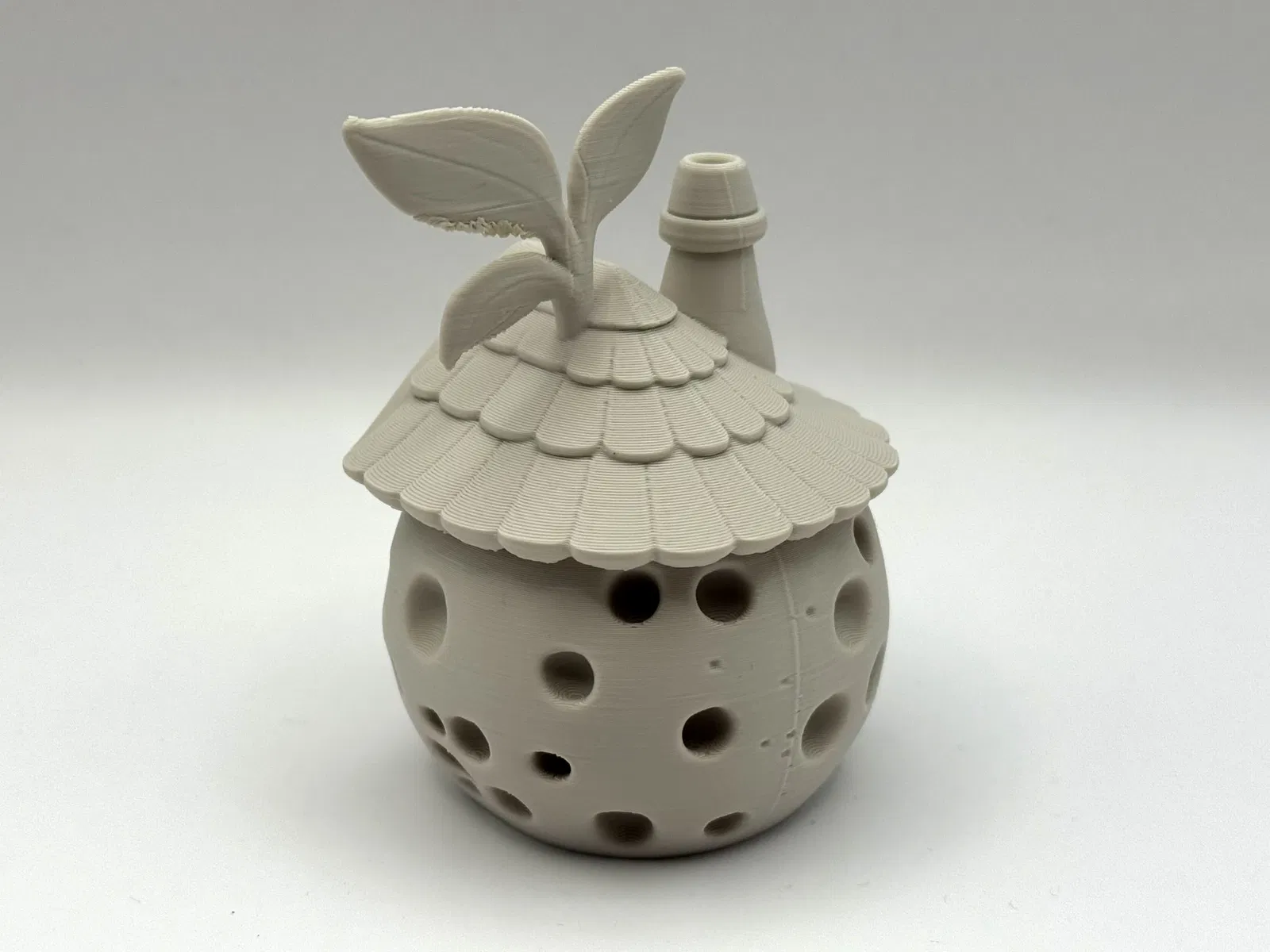 Được thiết kế trông như một ngôi nhà nhỏ xinh xắn đục đẽo từ một tảng phô mai khổng lồ, mô hình có bề mặt bo tròn với các lỗ hổng đặc trưng, cửa vòm cong và phần ống khói hình mầm cây giúp ngôi nhà thêm phần sinh động. Cho dù bạn đang trang trí một ngôi làng phép thuật hay chỉ đơn giản muốn tìm một món đồ trang trí độc lạ để tạo điểm nhấn, mẫu này chắc chắn sẽ làm bạn hài lòng.