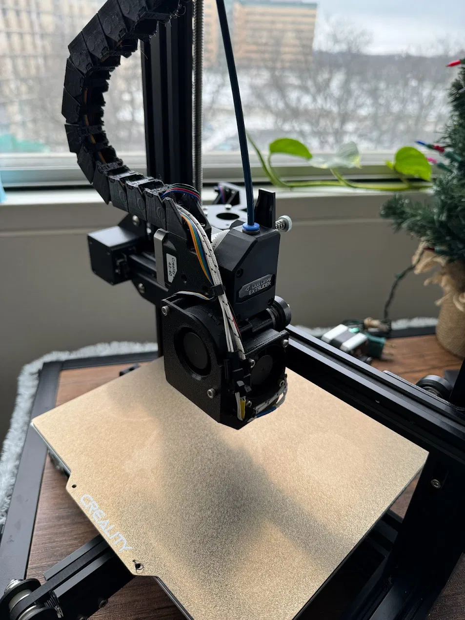 - Đầu in được cải tiến: Sử dụng Direct, dual drive extruder, tận dụng hotend và quạt làm mát zin. Nâng cấp quạt 5015 cùng ống dẫn khí để làm mát hiệu quả hơn. Trang bị BlTouch thay cho công tắc trục Z để tự động bù lưới (mesh compensation).
