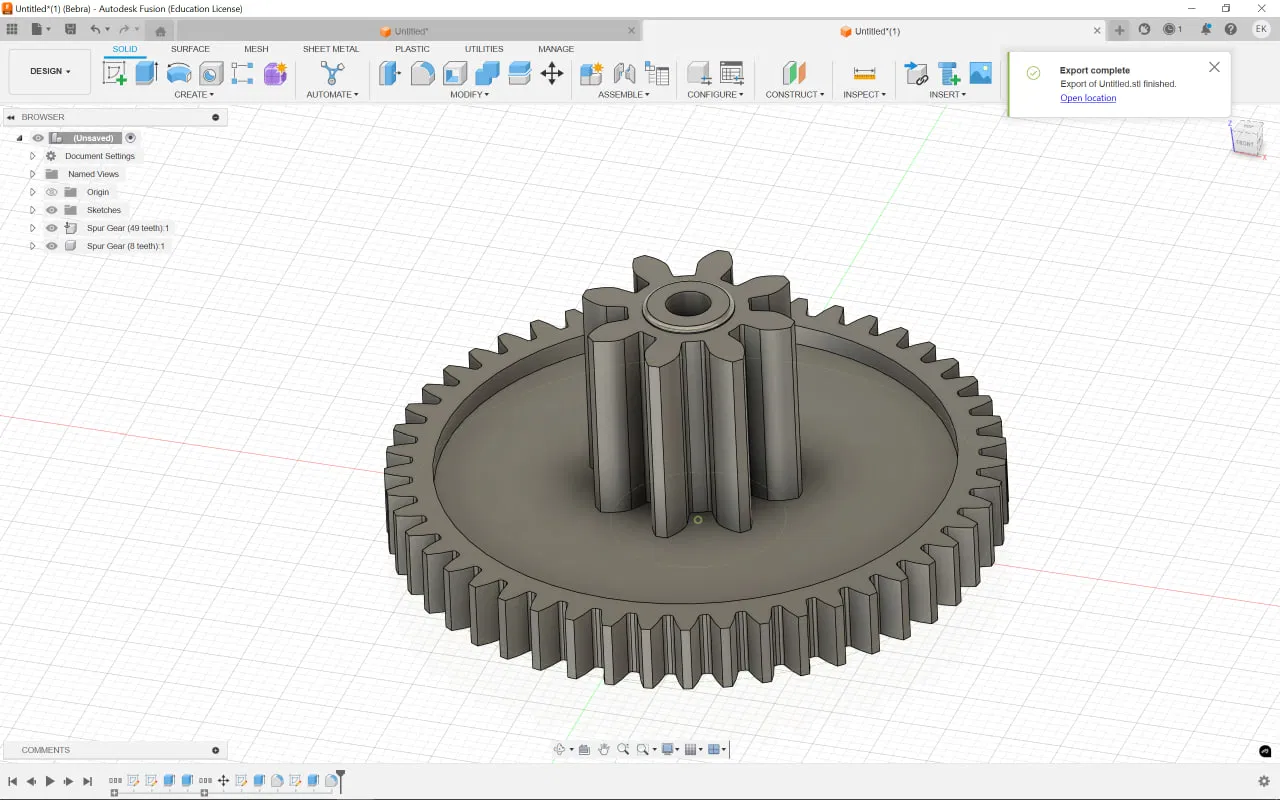 Mô hình bánh răng kép 49/8 răng được thiết kế với cấu trúc hai tầng trên cùng một trục, mang lại tỉ số truyền 6,125:1. Sản phẩm có độ bền cơ học cao, kích thước ổn định, phù hợp in bằng nhựa ABS hoặc PETG cho các ứng dụng cơ khí chính xác.