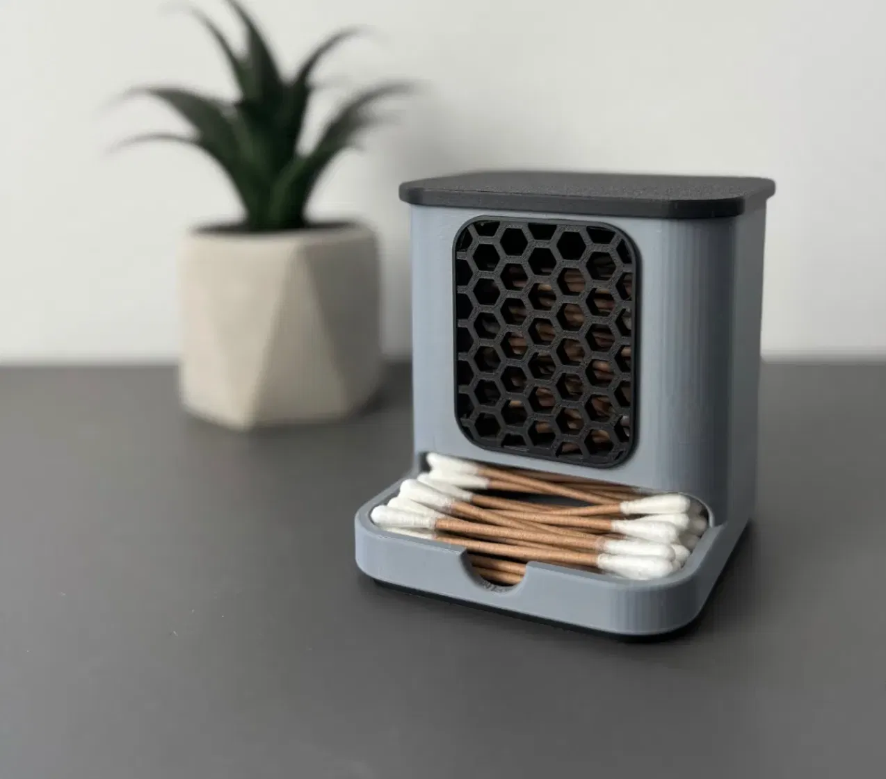 Mẫu hộp đựng bông tăm thiết kế dạng tổ ong tinh tế, tiện lợi và dễ in. Sản phẩm hỗ trợ in nhiều màu mà không cần đến AMS, kèm hướng dẫn chi tiết về profile in tối ưu để đạt chất lượng tốt nhất.