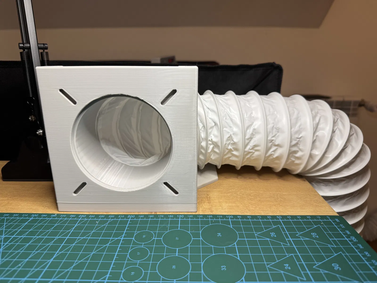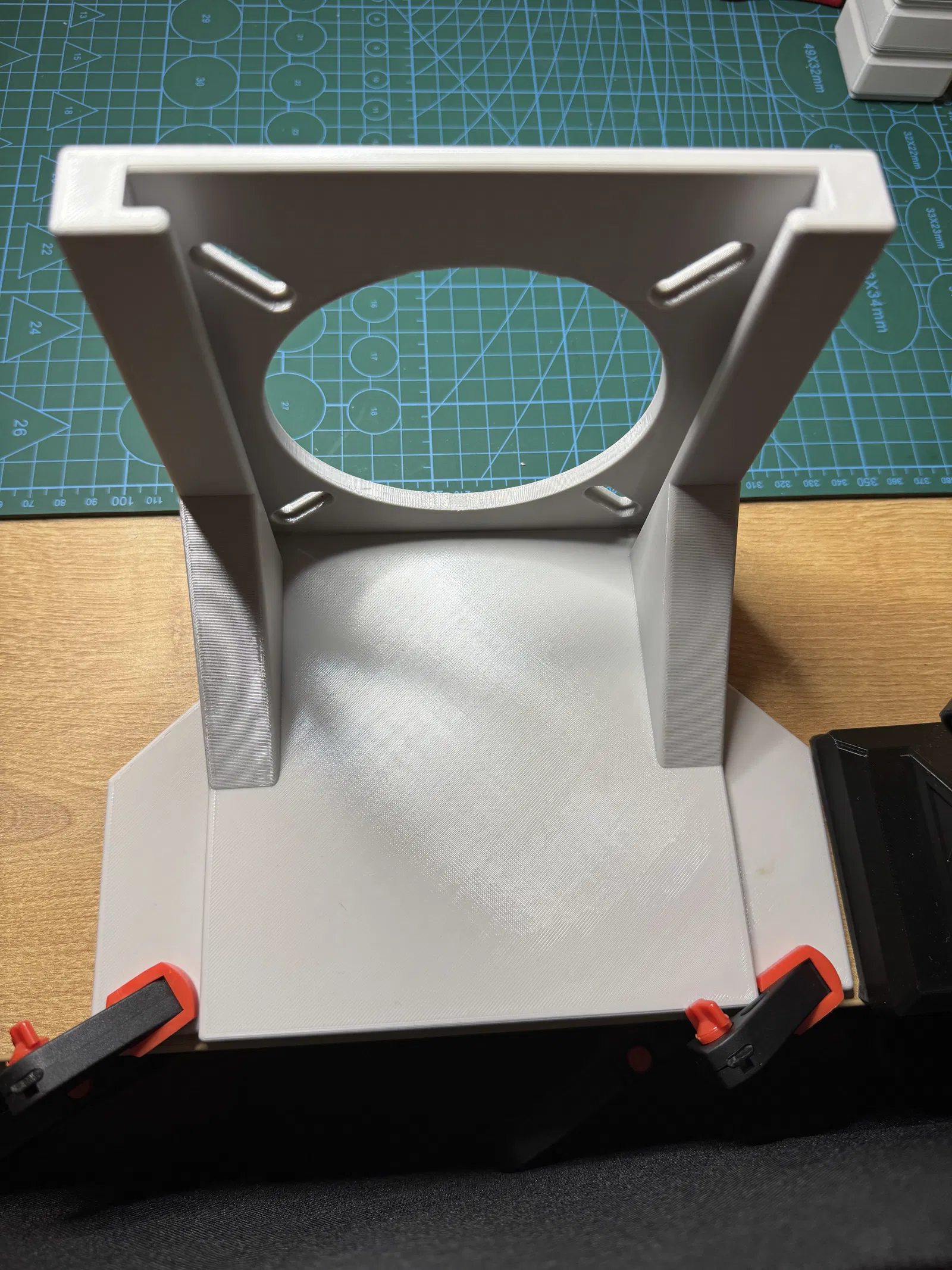 Phụ kiện gắn bàn tiện lợi dành cho dự án Dust Collector, hoạt động như một máy hút khói mini hiệu quả. Thiết kế linh hoạt với các khe bắt vít, tương thích nhiều kích cỡ ống dẫn và dễ dàng cố định chắc chắn vào bàn làm việc bằng kẹp.