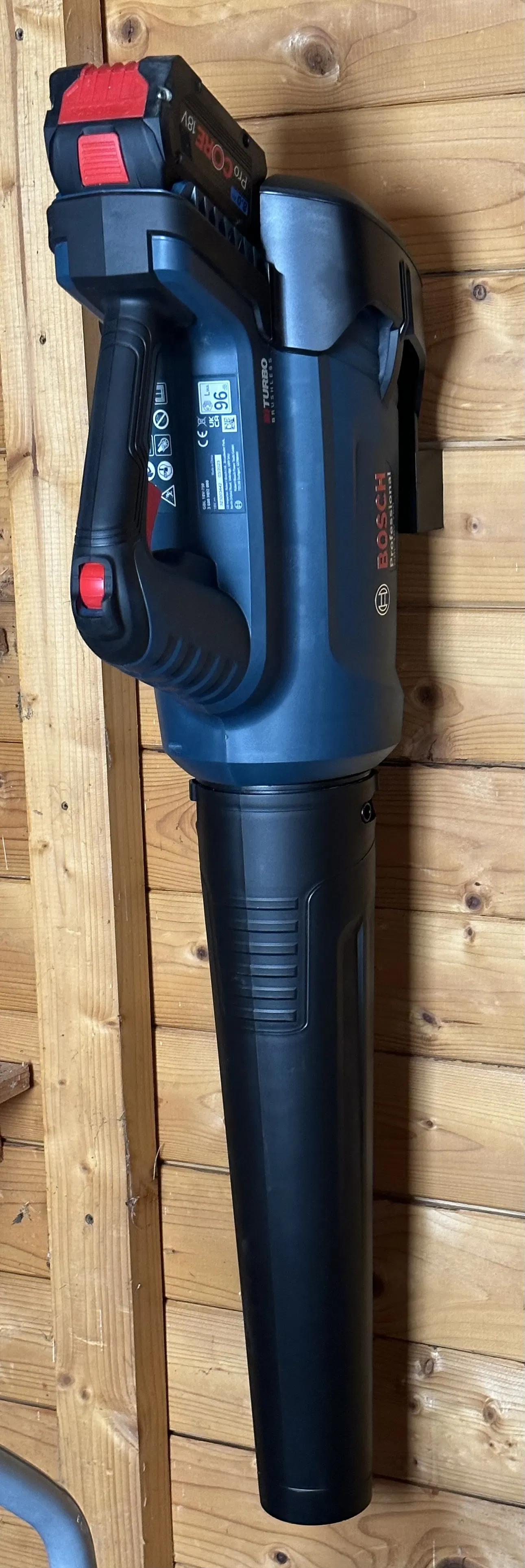 Nếu anh em đang sở hữu chiếc máy thổi lá Bosch Professional GBL 18V-750 mạnh mẽ mà chưa biết cất giữ sao cho gọn gàng thì đây chính là giải pháp dành cho mọi người. Giá treo tường này được thiết kế chuyên biệt để giữ chặt chiếc máy của anh em ngay trên tường nhà xưởng hoặc garage. Thay vì để máy nằm chỏng chơ trên bàn làm việc hay dưới sàn dễ gây trầy xước, việc treo lên cao giúp không gian làm việc của anh em trở nên ngăn nắp và chuyên nghiệp hơn hẳn.