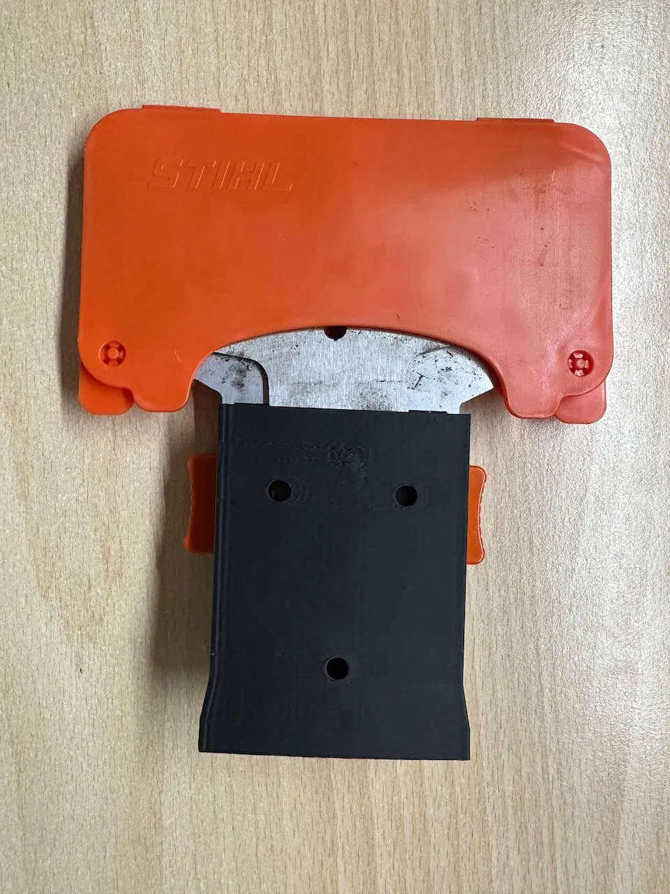 Việc lắp đặt vô cùng đơn giản, giúp bạn tiết kiệm không gian đáng kể thay vì để máy nằm bừa bãi trên kệ. Đối với phiên bản giá treo, bạn chỉ cần cố định vào tường bằng ốc vít để treo máy lên một cách gọn gàng. Ngược lại, nếu bạn chỉ muốn bảo vệ lưỡi cắt khỏi trầy xước, bụi bẩn hoặc va chạm không đáng có trong quá trình di chuyển, bạn có thể in phiên bản không có lỗ vít để làm nắp đậy vừa khít. Đây là một món đồ cần thiết để kéo dài tuổi thọ cho lưỡi cắt sắc bén của máy Stihl.