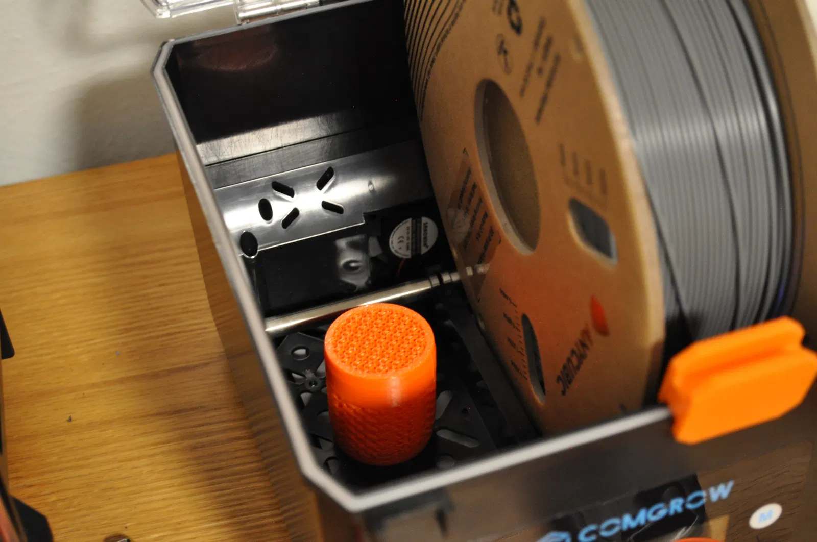 Mình có một ít hạt chống ẩm (silica gel) dư ở nhà và muốn làm một cái hộp đựng để bỏ vào máy sấy nhựa in (filament drier). Mình đã tìm kiếm nhiều mẫu trên mạng nhưng hầu hết đều có lỗ quá lớn, chỉ dùng được cho loại hạt to. Thế nên mình đã thiết kế một cái hộp đơn giản và tận dụng phần infill để không khí lưu thông ra vào dễ dàng hơn. Vì hộp có kích thước hơi nhỏ nên việc đổ hạt silica gel vào hơi bất tiện, mình có thiết kế thêm một cái phễu in rất nhanh để hỗ trợ. Mọi người có thể tải phễu tại đây: