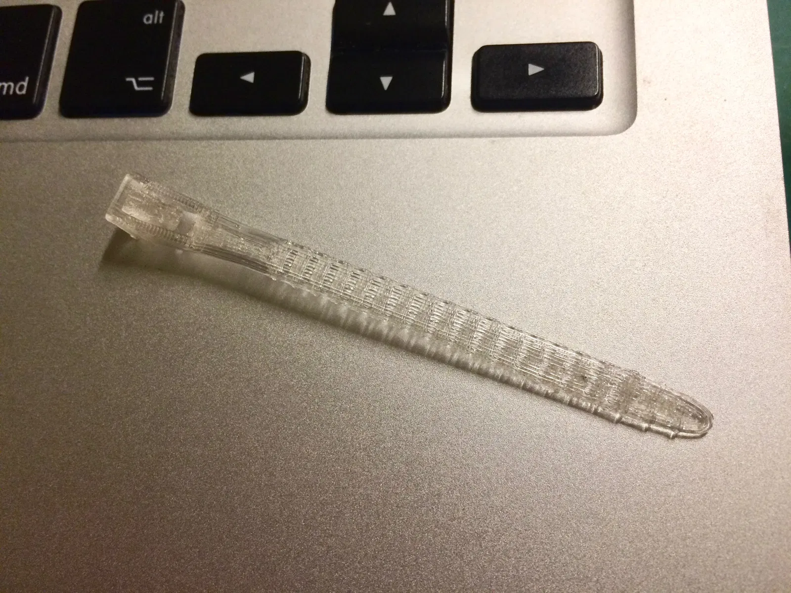 Lúc đầu, mình thiết kế dựa trên thông số đầu phun (nozzle) 0.6mm và độ cao lớp in 0.4mm (để in nhanh với kích thước lớn), nên cấu trúc cơ bản khá dày dặn. Sau đó, mình thử thu nhỏ xuống còn 2/3 để in với đầu phun 0.4mm và kết quả là bản in rất đẹp (như bản trong suốt trong ảnh). Vì vậy, mình đã đăng tải cả hai kích thước: bản gốc cho nozzle 0.6mm và bản thu nhỏ cho nozzle 0.4mm. Cả hai đều có 4 độ dài khác nhau, sẵn sàng để đưa vào slicer.