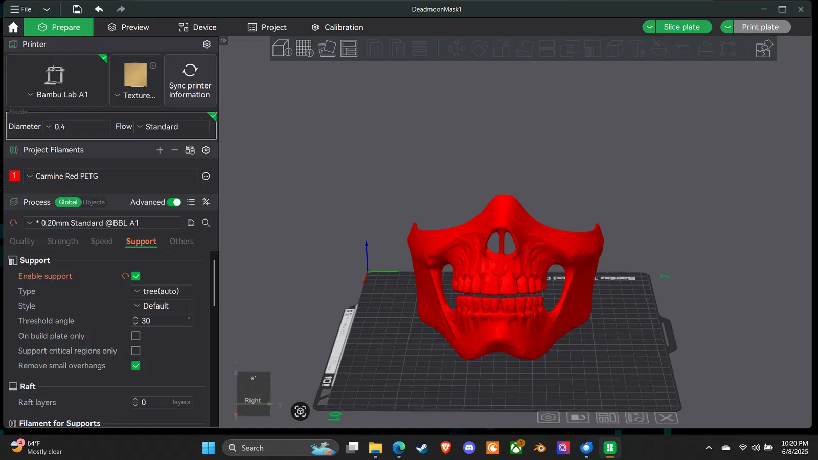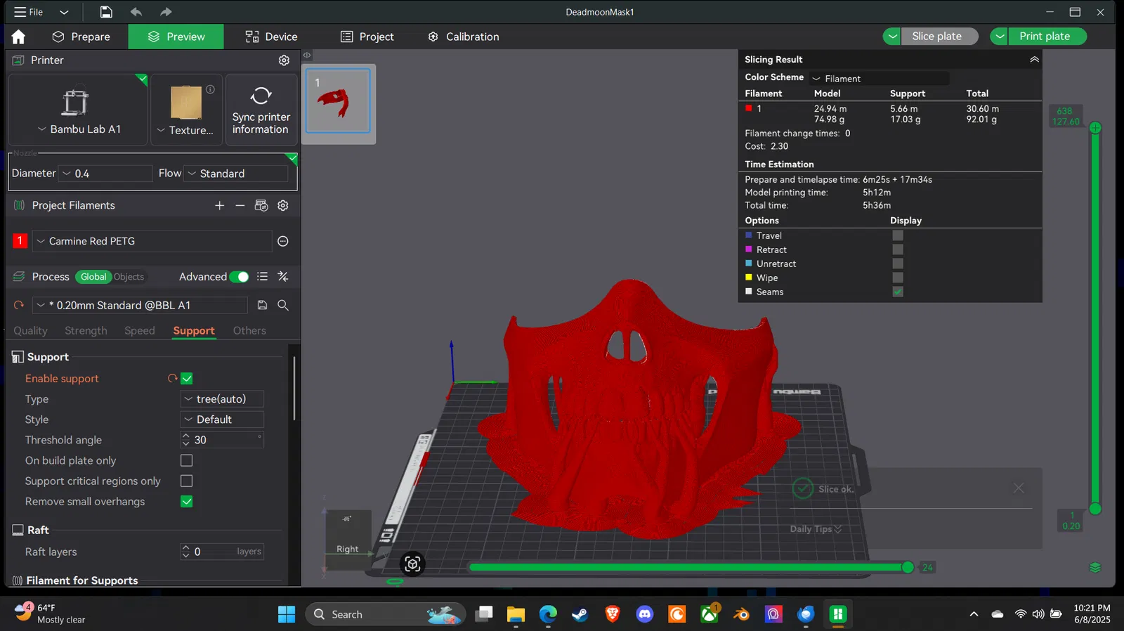 Chất liệu: Prusament PETG màu đỏ trong suốt (màu yêu thích số 1 của mình)