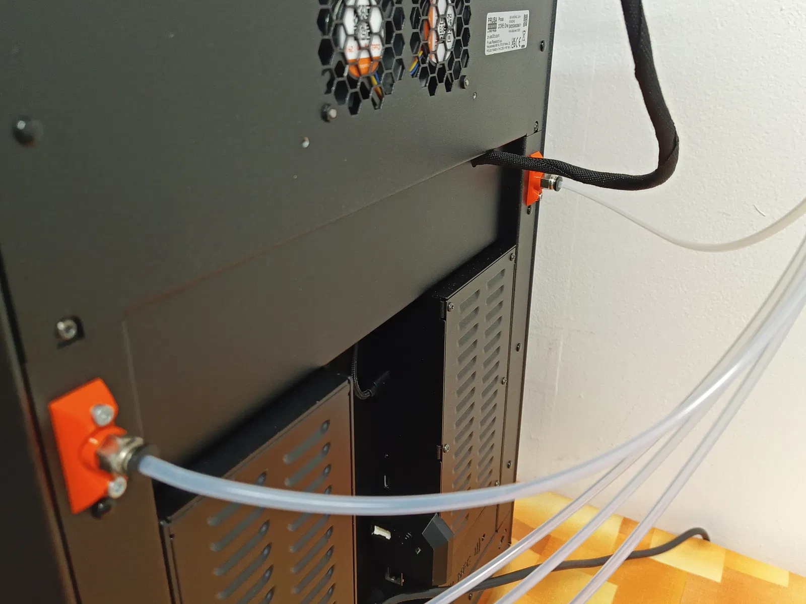 - Thêm lỗ và đầu nối FESTO vào các trụ phía sau để đi ống PTFE.