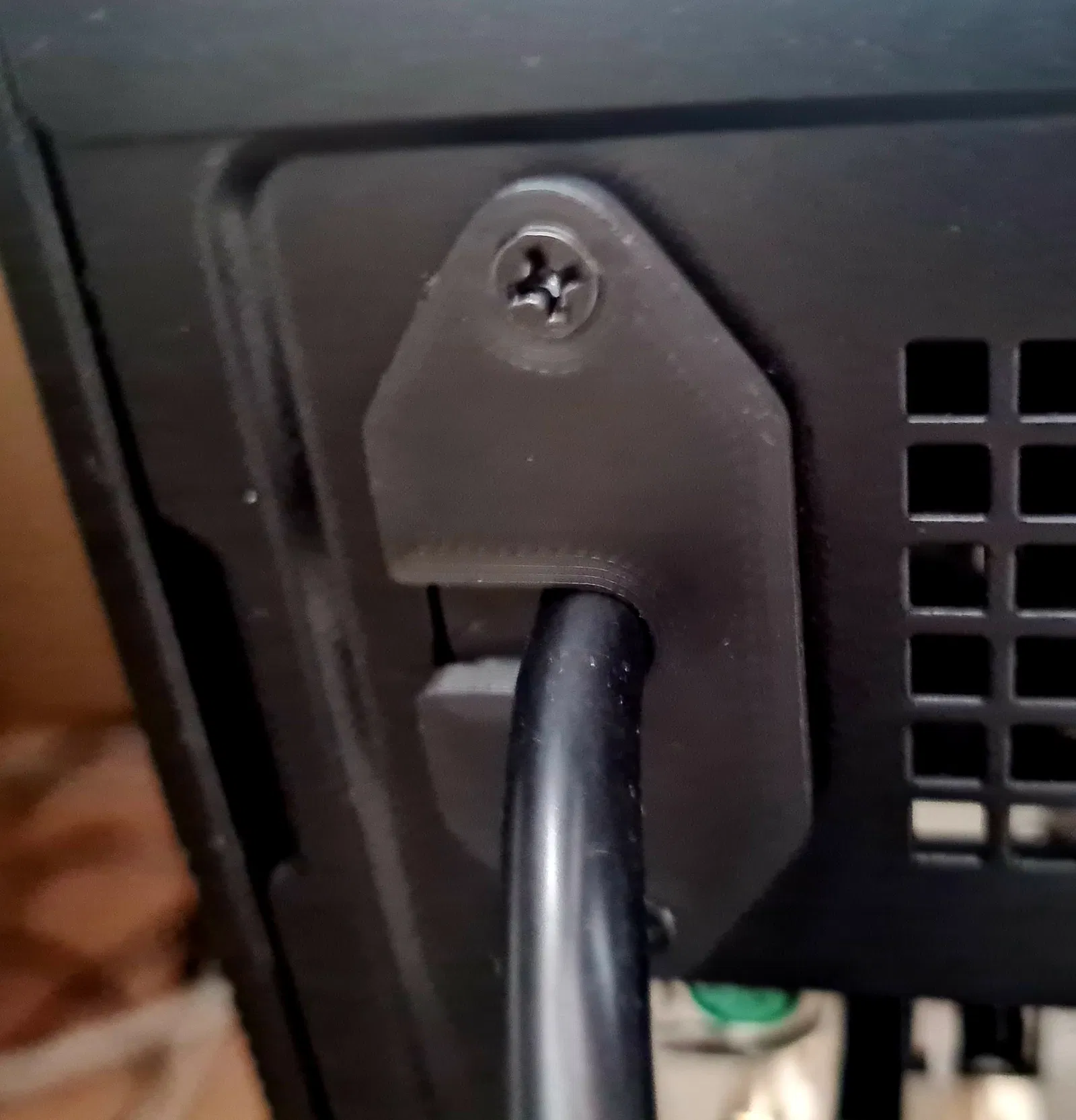 Các bộ nguồn Corsair không vừa vặn hoàn hảo vào vỏ Asus AP201 do hướng cáp nguồn khác nhau. Để giải quyết vấn đề này, hãy thay thế phần mở rộng cáp nguồn đi kèm bằng một cáp tùy chỉnh phù hợp. Khi cáp tùy chỉnh được sử dụng, phần 3D in này có thể được sử dụng để cố định cáp vào lỗ được chỉ định ở phía sau vỏ.