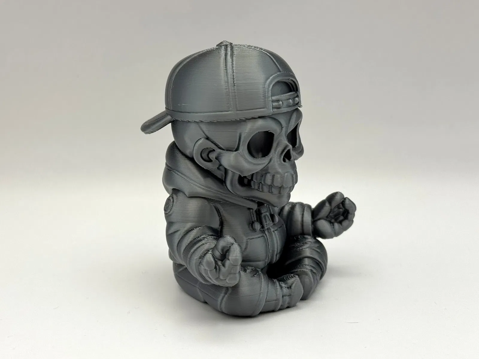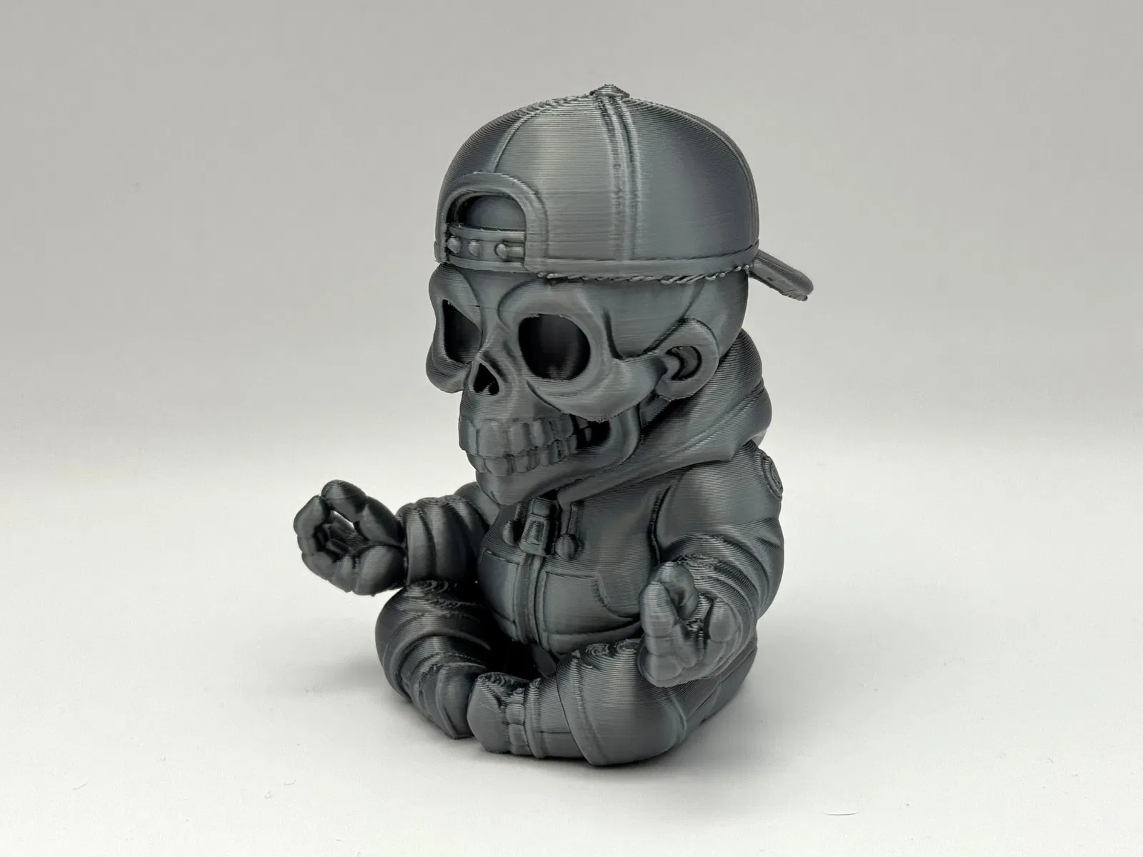 Với chiếc mũ snapback, áo hoodie rộng thùng thình và tư thế ngồi thiền, chú tiểu mini phong cách skater này sẽ mang đến một làn gió mới cho kệ sách, bàn làm việc hoặc góc trang trí Halloween của bạn.