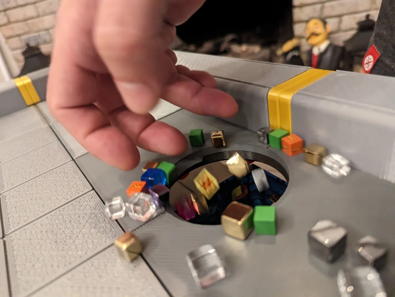 - Đặt hộp đựng trò chơi hoặc cốc đựng linh kiện của bạn ở ngay bên dưới bàn.