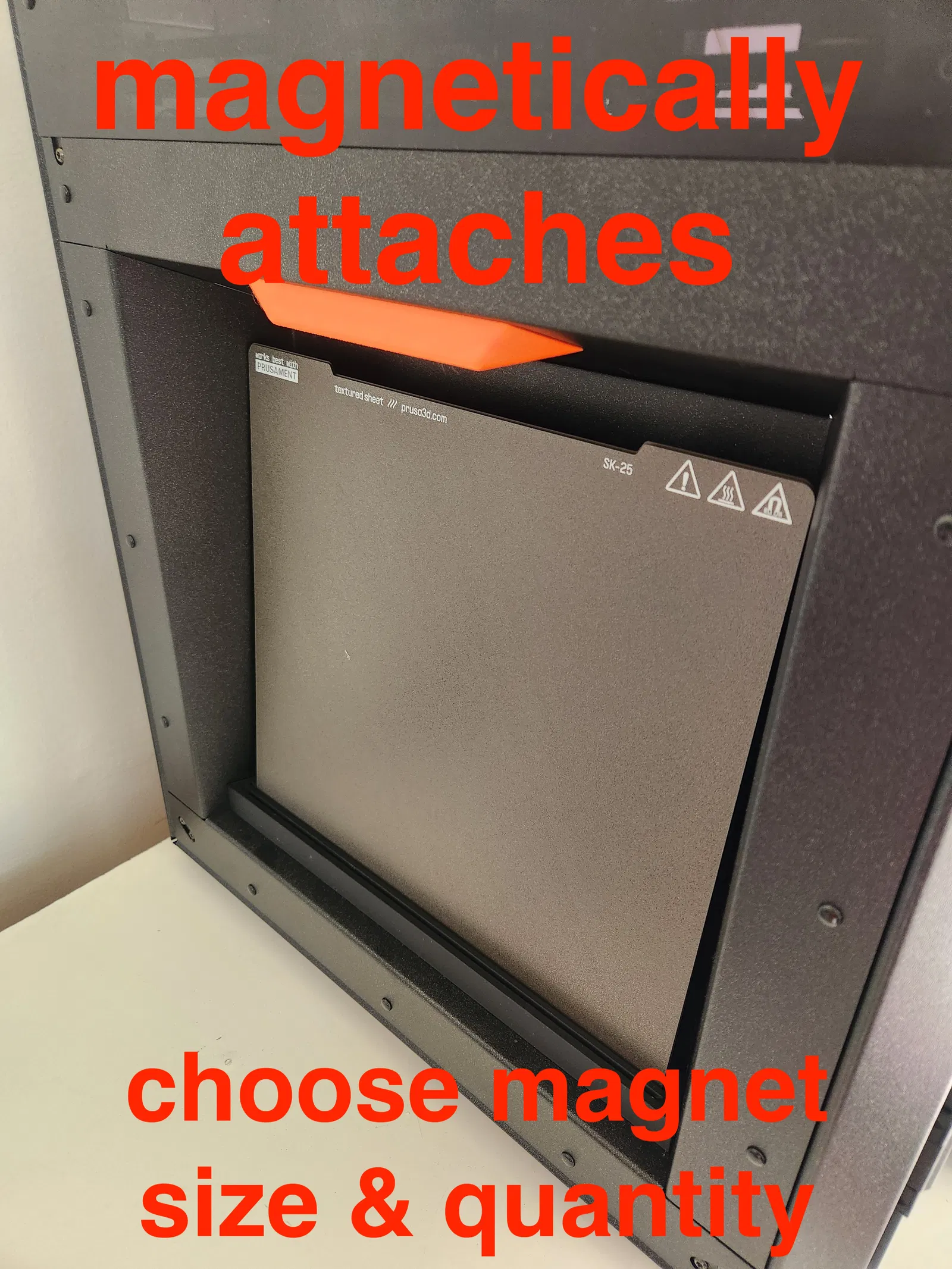Giải pháp lưu trữ lên đến 3 tấm in bằng nam châm ngay trên bảng điều khiển bên trái của máy in Prusa CORE One. Thiết kế này hỗ trợ tùy chỉnh linh hoạt kích thước và số lượng nam châm thông qua file Autodesk Fusion 360 đi kèm để phù hợp với nhu cầu của bạn.