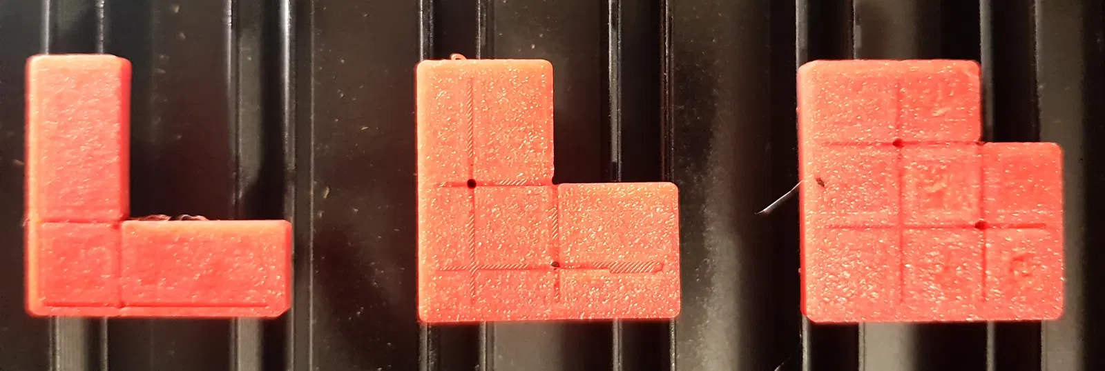 Các mẫu trong ảnh được in bằng nhựa PETG màu đỏ với chế độ thiết lập "fast".
