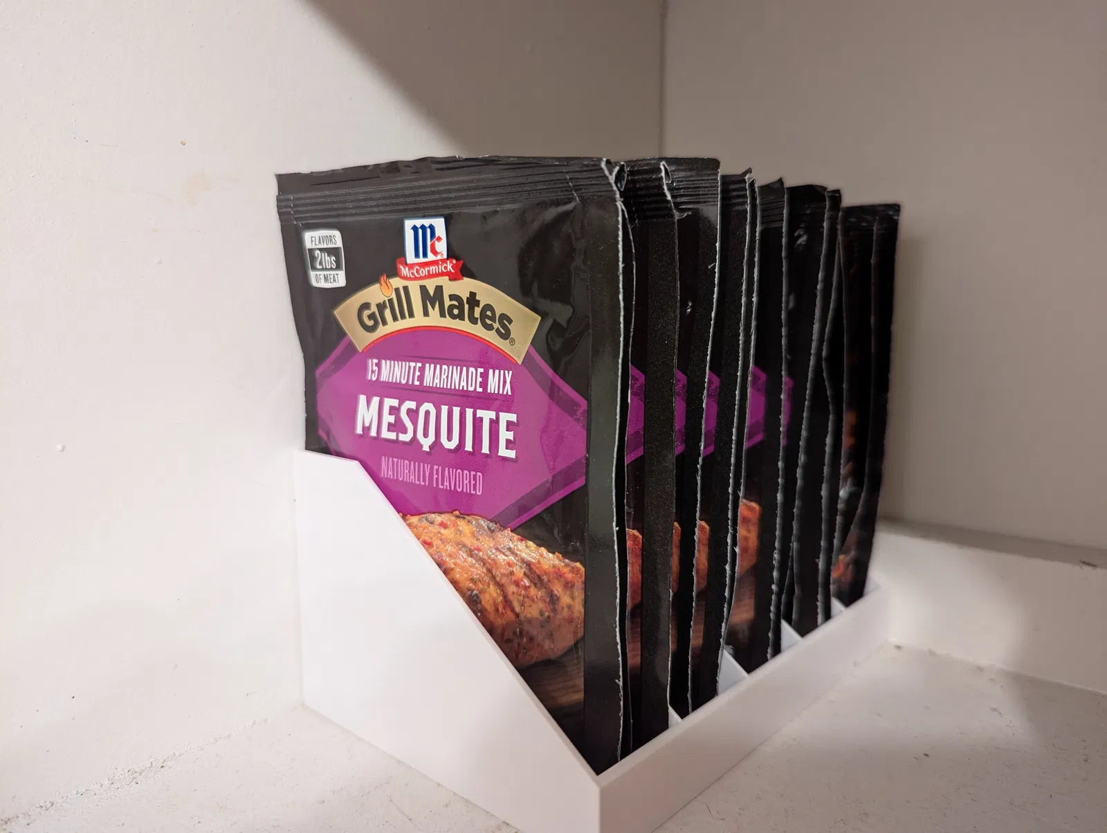 Bạn đang tìm cách sắp xếp các gói gia vị, gói ướp thịt trong bếp? Mẫu khay này giúp bạn dễ dàng lật xem các gói gia vị và lấy chúng ra từ bên hông, giúp tận dụng tối đa không gian lưu trữ của tủ bếp mà vẫn đảm bảo sự gọn gàng.