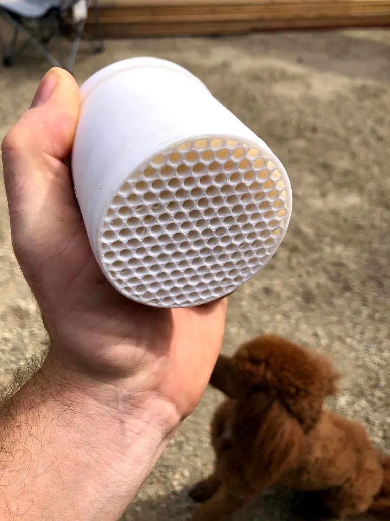 Phiên bản đầu tiên của đầu vòi tưới cây Laminar Flow (mk1). Sản phẩm hiện vẫn còn bị rò rỉ nhẹ và dòng nước chưa thực sự đều. Bạn cần thêm một miếng bùi nhùi thép để ổn định áp suất. Tệp thiết kế đã bao gồm file Step cho mọi người tùy chỉnh.