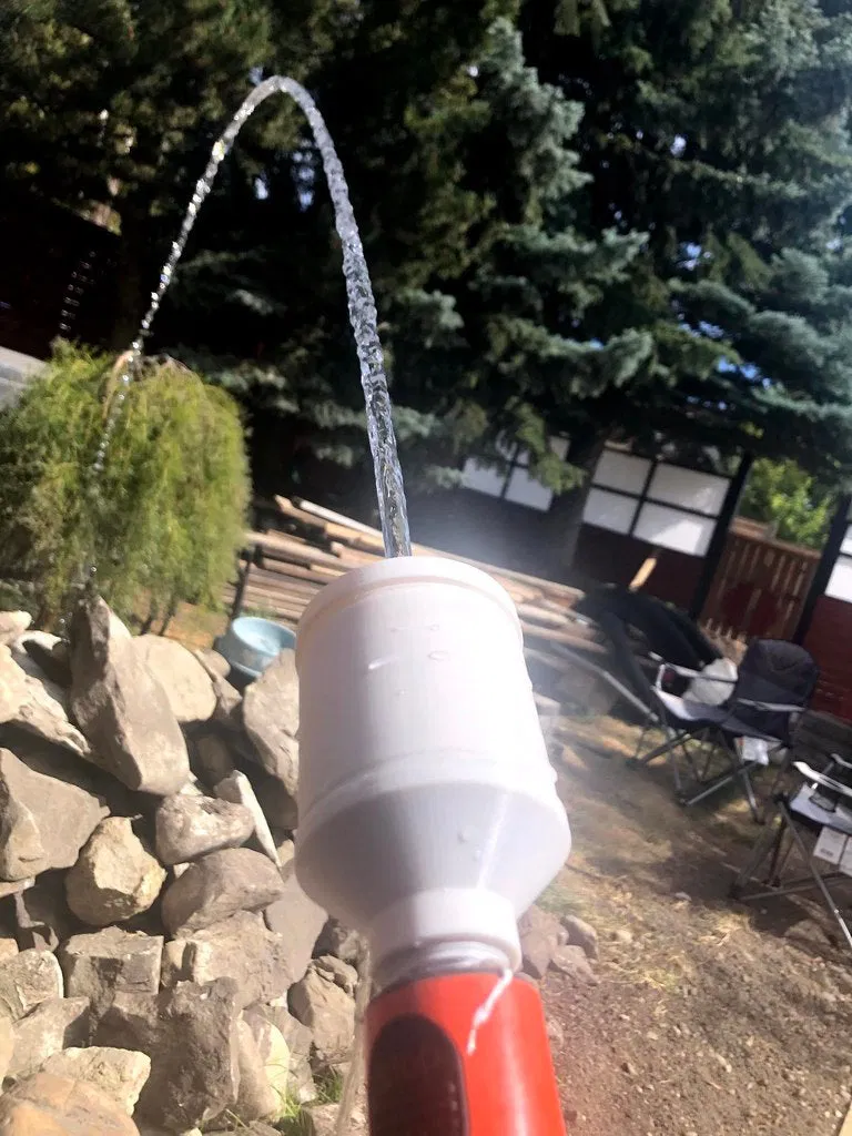 Đây là phiên bản đầu tiên nên còn hơi rò rỉ nước, dòng nước phun ra từ đầu vòi không được đều lắm. Có thể mình sẽ nghiên cứu ý tưởng sử dụng một tấm nhôm ở đầu vòi để cải thiện luồng nước.