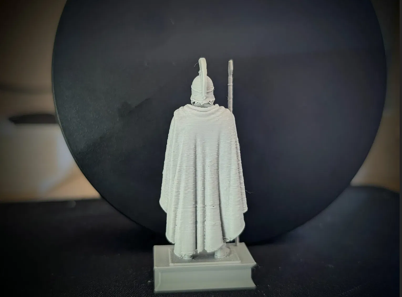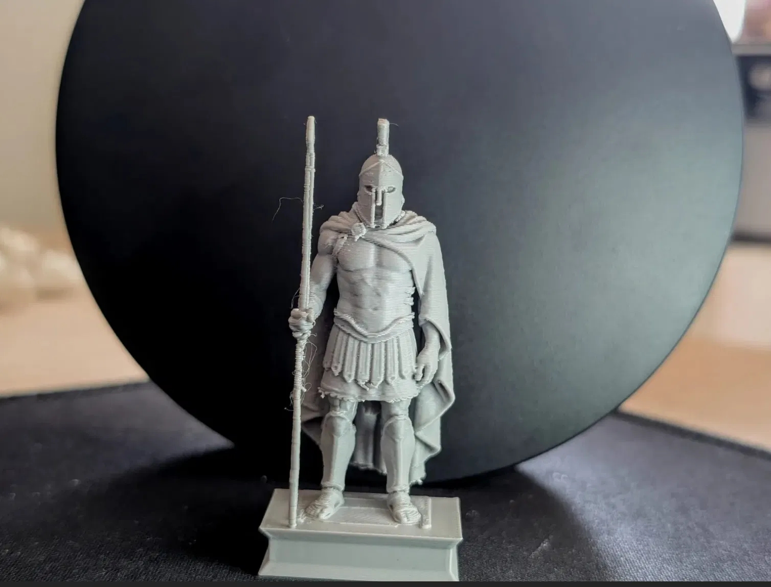 Mô hình thu nhỏ ấn tượng của một chiến binh Spartan này được in bằng nhựa PETG trên máy in FDM với tỉ lệ nhỏ. Dù kích thước khiêm tốn, các đặc điểm đặc trưng như mũ giáp, ngọn giáo, áo choàng và cơ bắp vẫn hiện lên vô cùng sắc nét. Tượng đứng trên một bệ đỡ chắc chắn, cực kỳ phù hợp để làm vật trang trí hoặc sưu tầm.