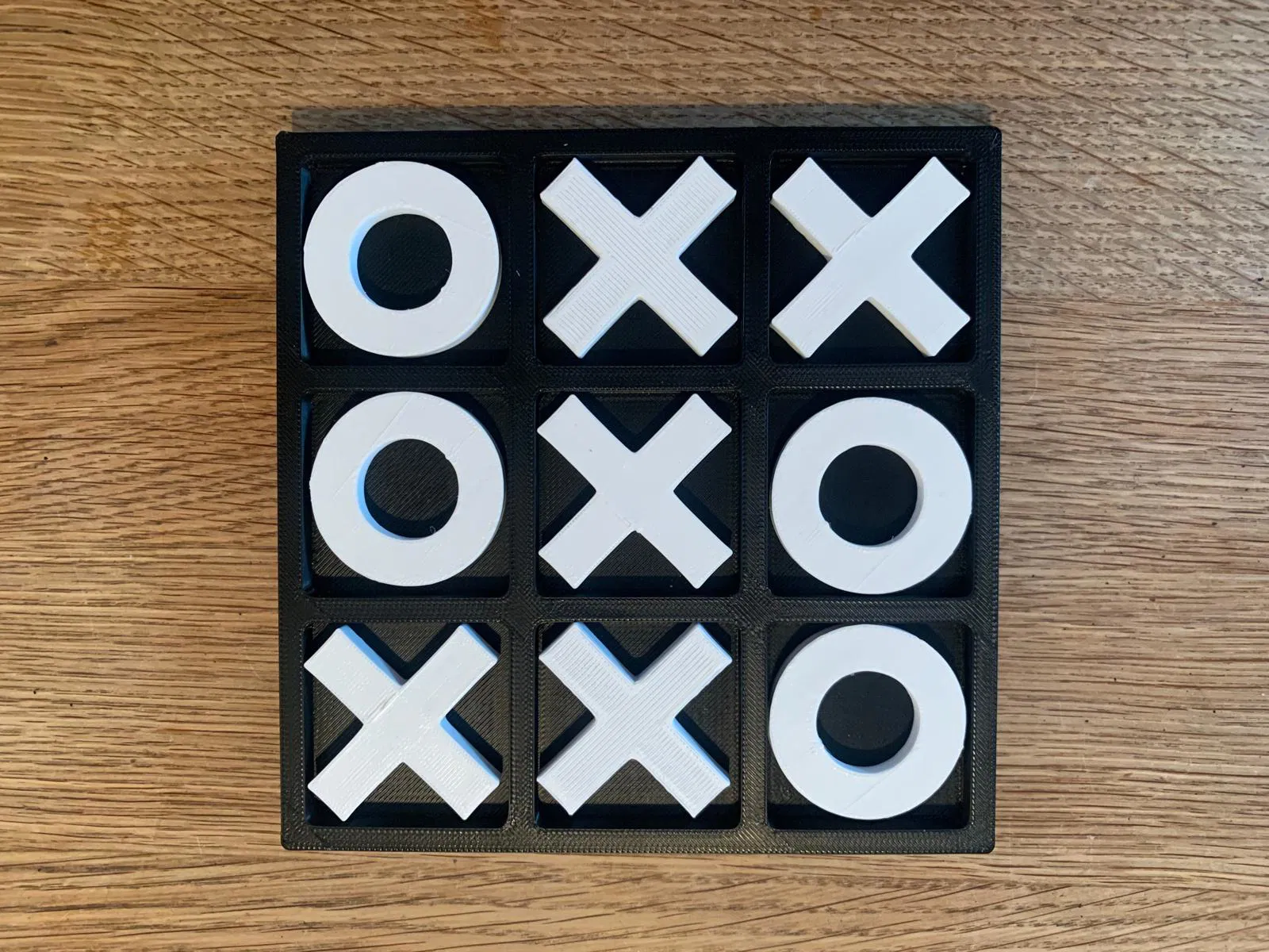 Kết quả mang lại là một thiết kế nhỏ gọn nhưng ấn tượng, với các quân X và O lớn vừa vặn trong ô lưới, giúp việc chơi cờ trở nên dễ dàng và thú vị. Bộ cờ này rất phù hợp cho mọi lứa tuổi và cũng là một món đồ trang trí bắt mắt khi không sử dụng.