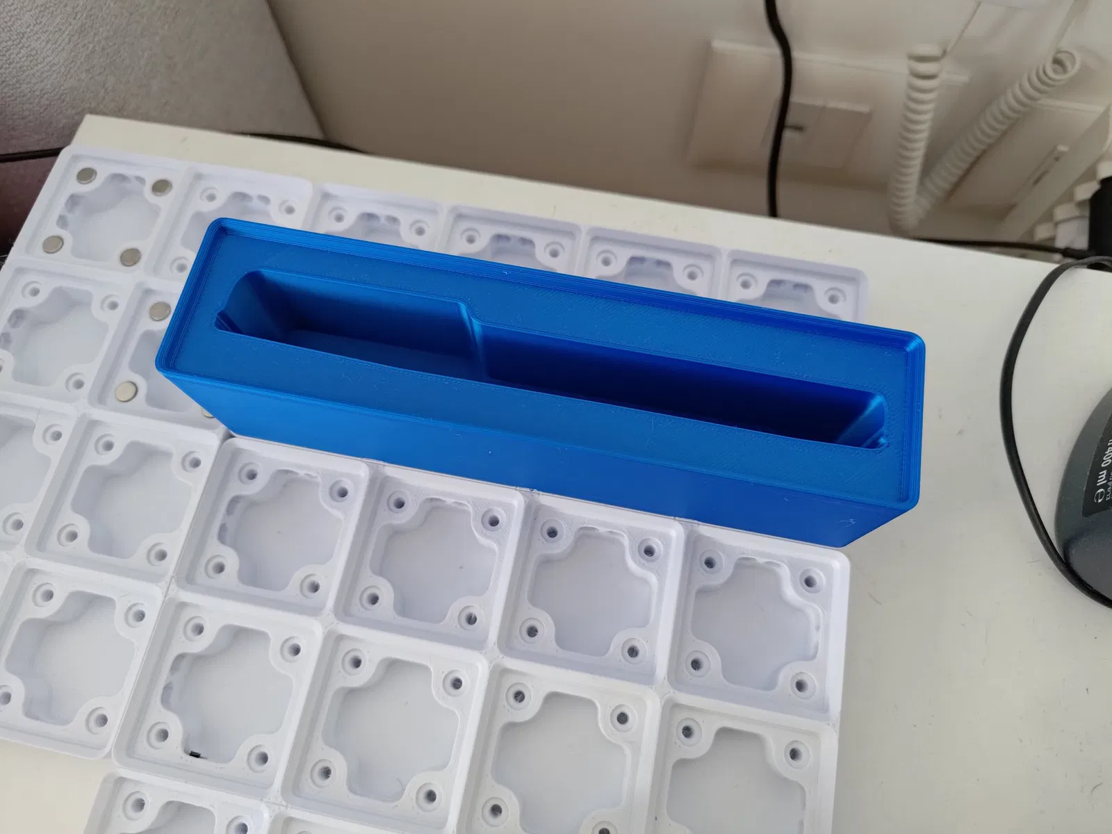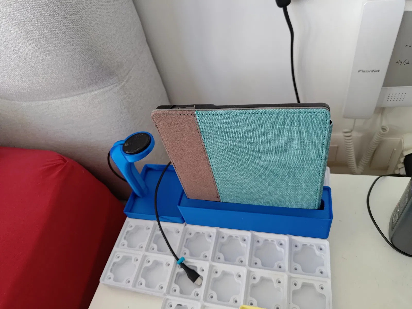 Một khe lưu trữ Gridfinity 1x4 cho một ốc đảo Kindle với trường hợp.