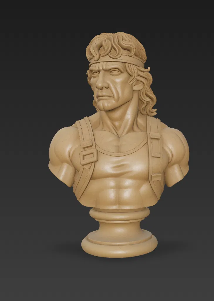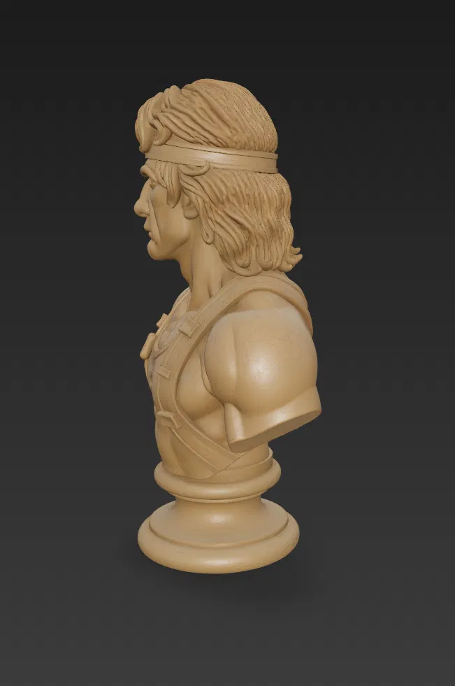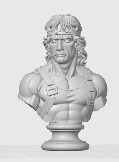 Mẫu tượng bán thân cực kỳ chi tiết này lột tả thần thái của một huyền thoại hành động — hoàn thiện với chiếc băng đô đặc trưng, cơ bắp cuồn cuộn và biểu cảm đầy mãnh liệt. Đây là lựa chọn hoàn hảo cho những bạn thích sưu tầm và là fan cứng của dòng phim hành động thập niên 80. Tượng được điêu khắc tỉ mỉ để thể hiện kết cấu và chi tiết vô cùng chân thực.
