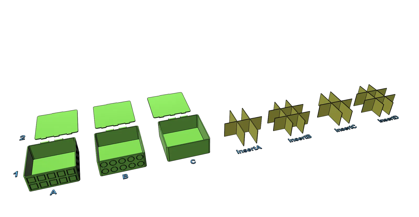 Đã test với PLA, layer 0.2mm, random seam, có dùng brim cho các insert.