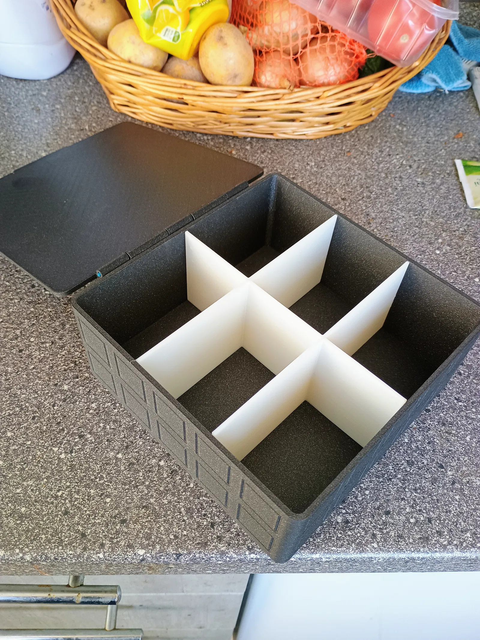 Hộp đựng trà được thiết kế thông minh, in dễ dàng không cần support. Kích thước tổng 170x175x73mm, có nhiều ngăn chứa tiện lợi. Sử dụng đoạn filament dư làm chốt trục rất chắc chắn. Phù hợp in bằng nhựa PLA với độ phân giải 0.2mm.