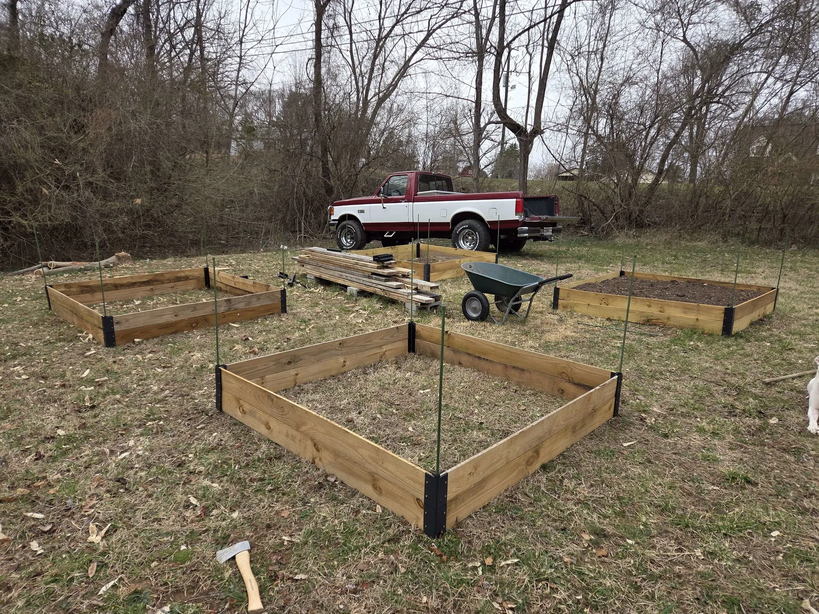 • (Tùy chọn nhưng đắt hơn) Gỗ Cedar cùng kích thước. Loại này bền hơn và không lo hóa chất ngấm vào đất. Dù nghiên cứu cho thấy hóa chất xử lý gỗ thông thường không đạt mức gây hại, nhưng nếu bạn kỹ tính thì có thể tự tìm hiểu thêm.