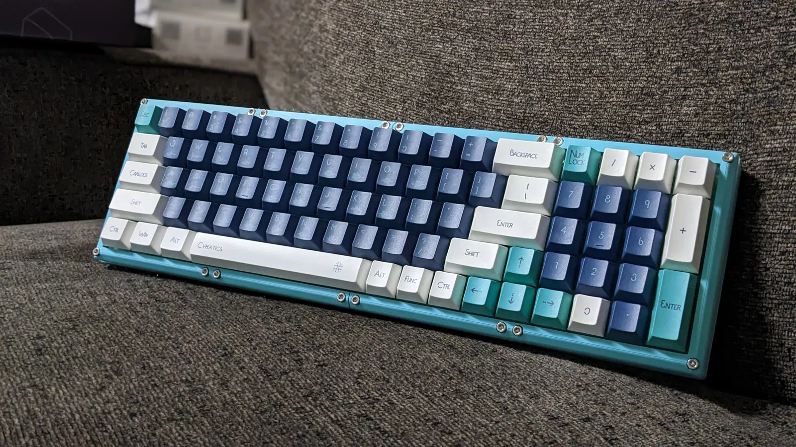 Bàn phím cơ với bố cục nhỏ gọn tiêu chuẩn bao gồm Numpad. Có thể được in trên máy in kích thước ender.