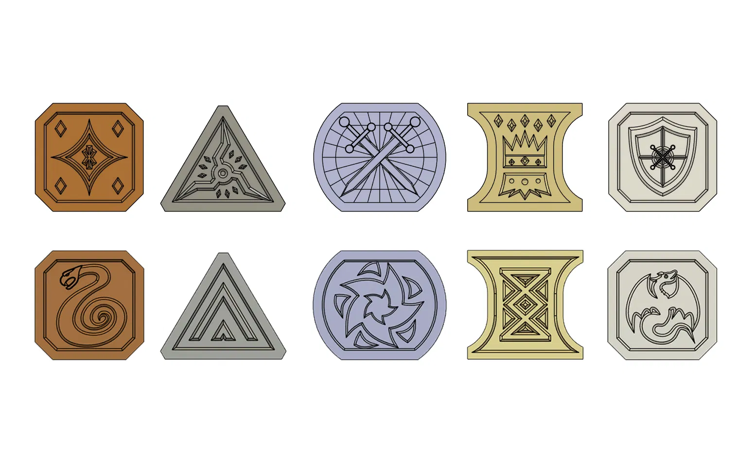 Bộ tiền xu giả tưởng tuyệt đẹp dành cho D&D và các game nhập vai khác. Bao gồm 5 loại: đồng, bạc, electrum, vàng và bạch kim. Thiết kế in 3D không cần support, cực kỳ phù hợp để tăng tính trải nghiệm cho các buổi chơi của bạn.