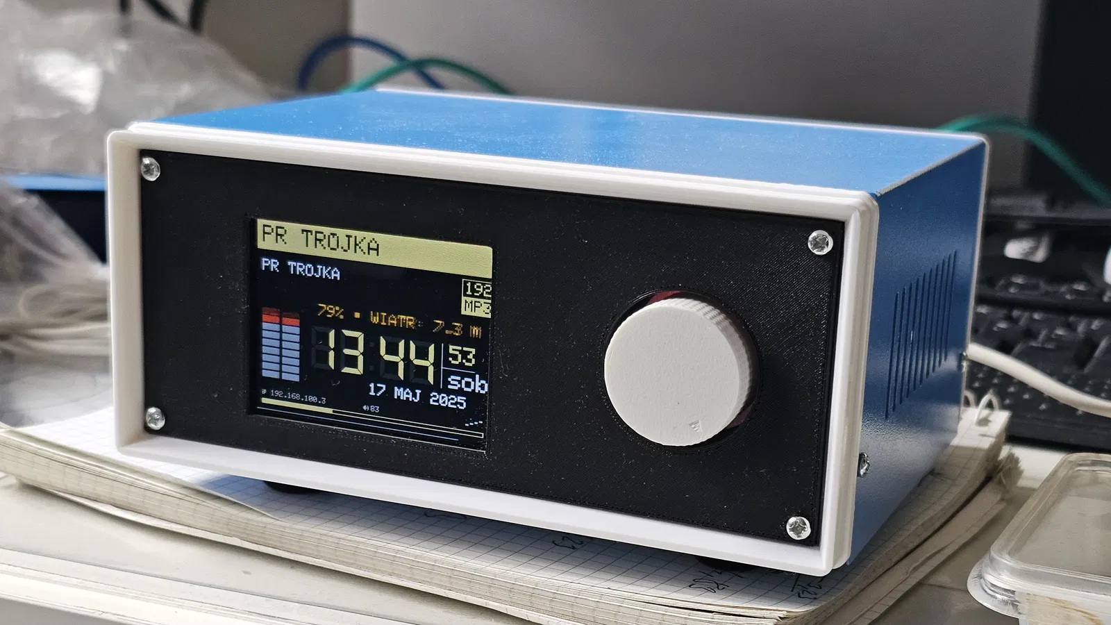 Mặt panel này được thiết kế chuyên biệt để lắp vào vỏ hộp kim loại DIY 80x170x130mm cho màn hình TFT LCD 2.8 inch và núm vặn encoder, rất thích hợp cho dự án YoRadio hoặc các dự án DIY tùy biến khác của bạn.
